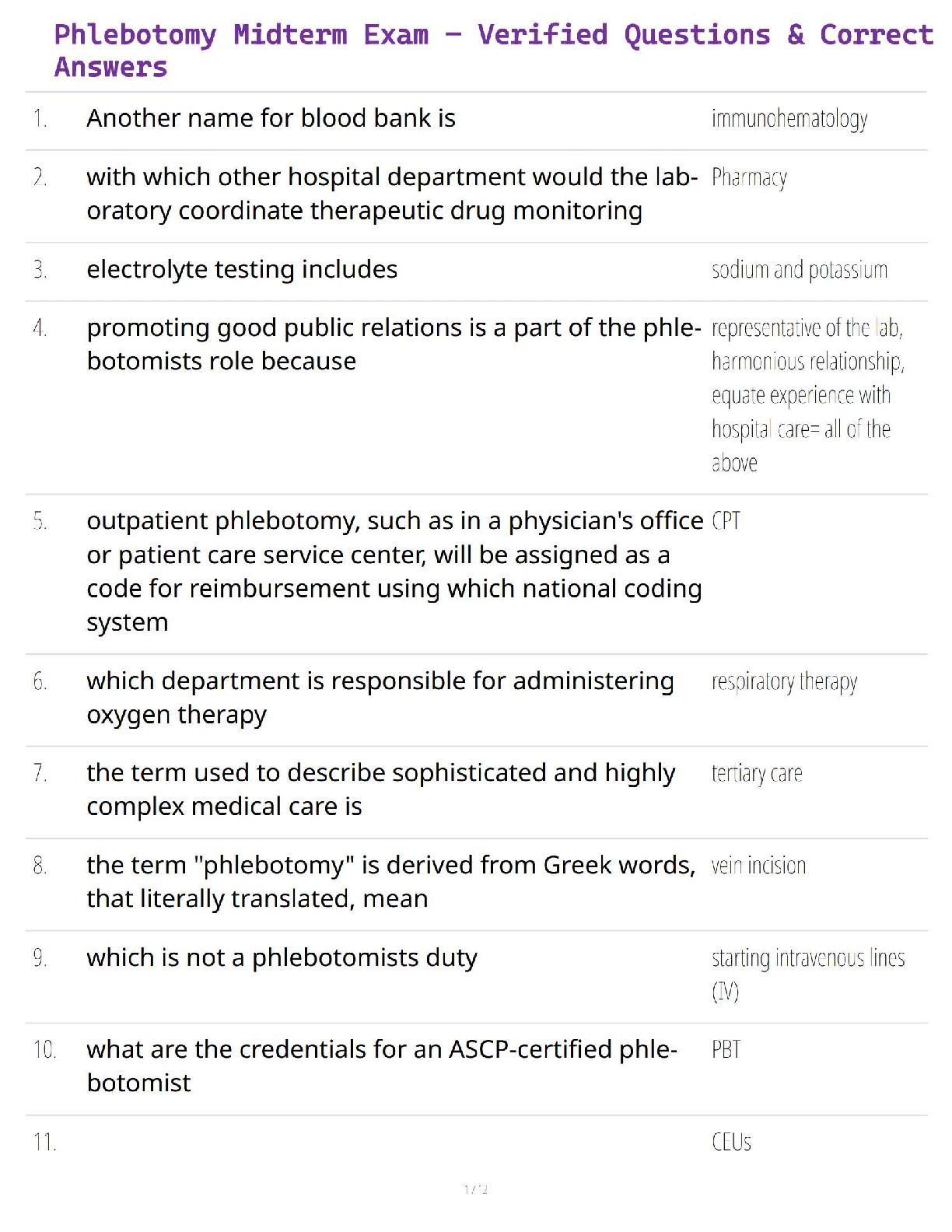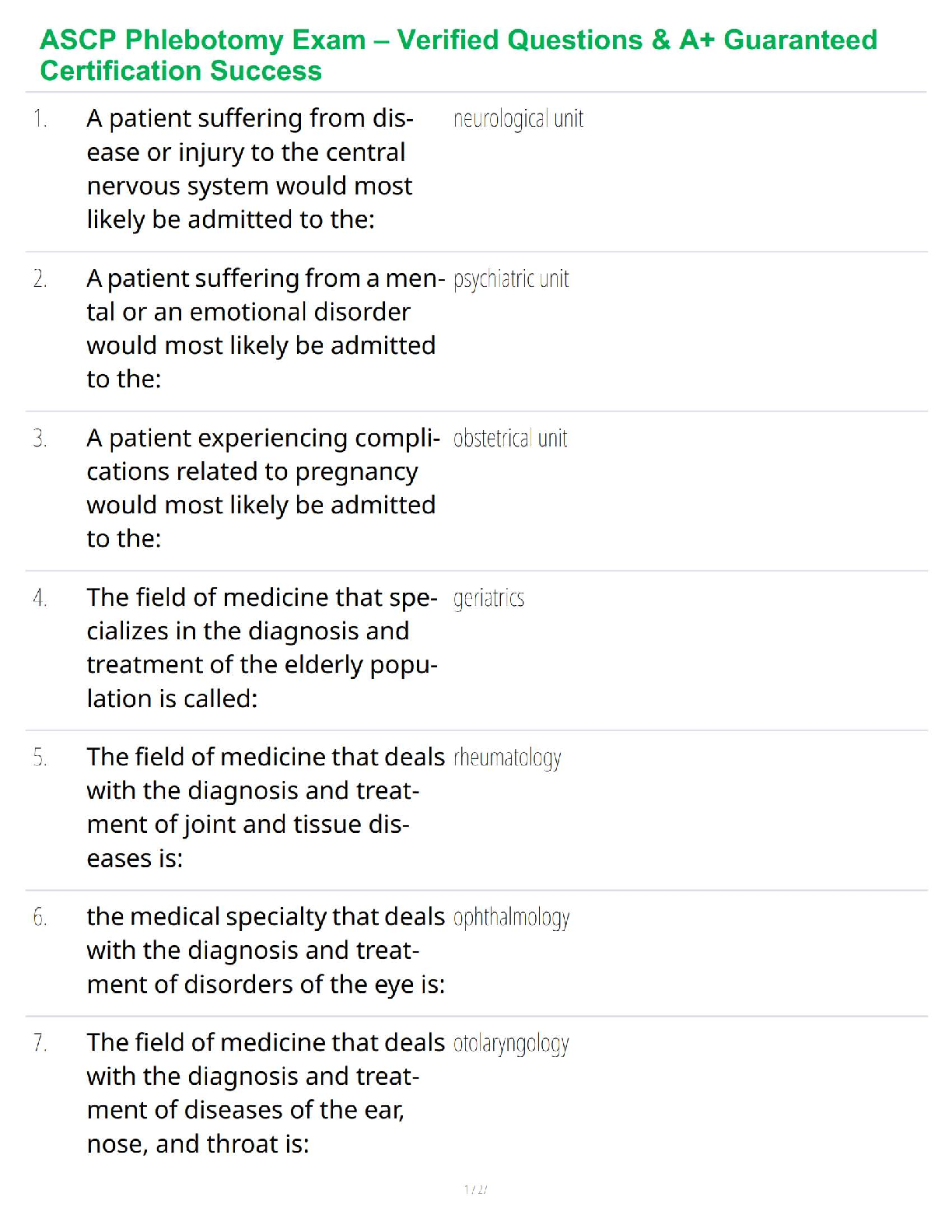 NHA phlebotomy > STUDY GUIDE > ASCP Phlebotomy Exam – Verified Questions & A+ Guaranteed Certification Success (All)