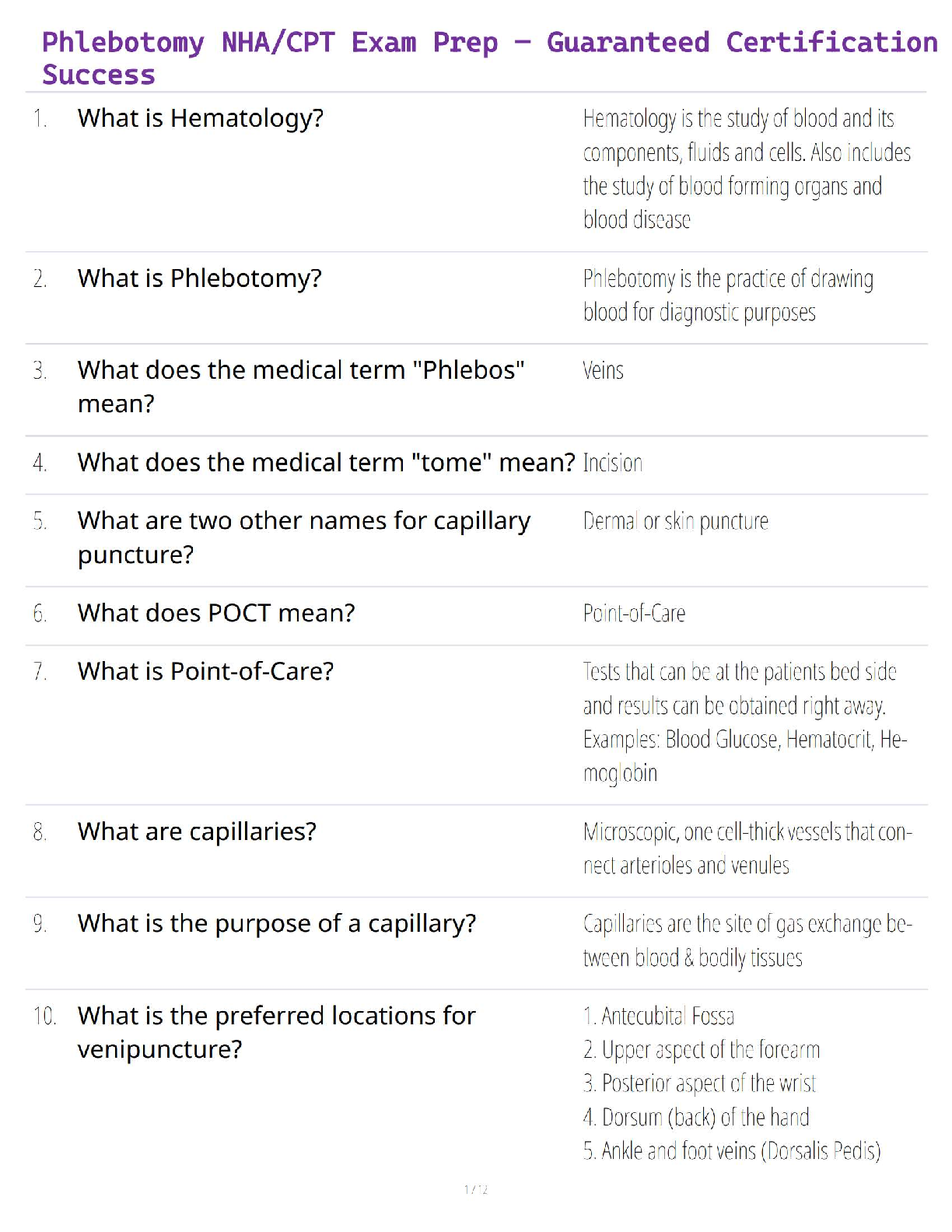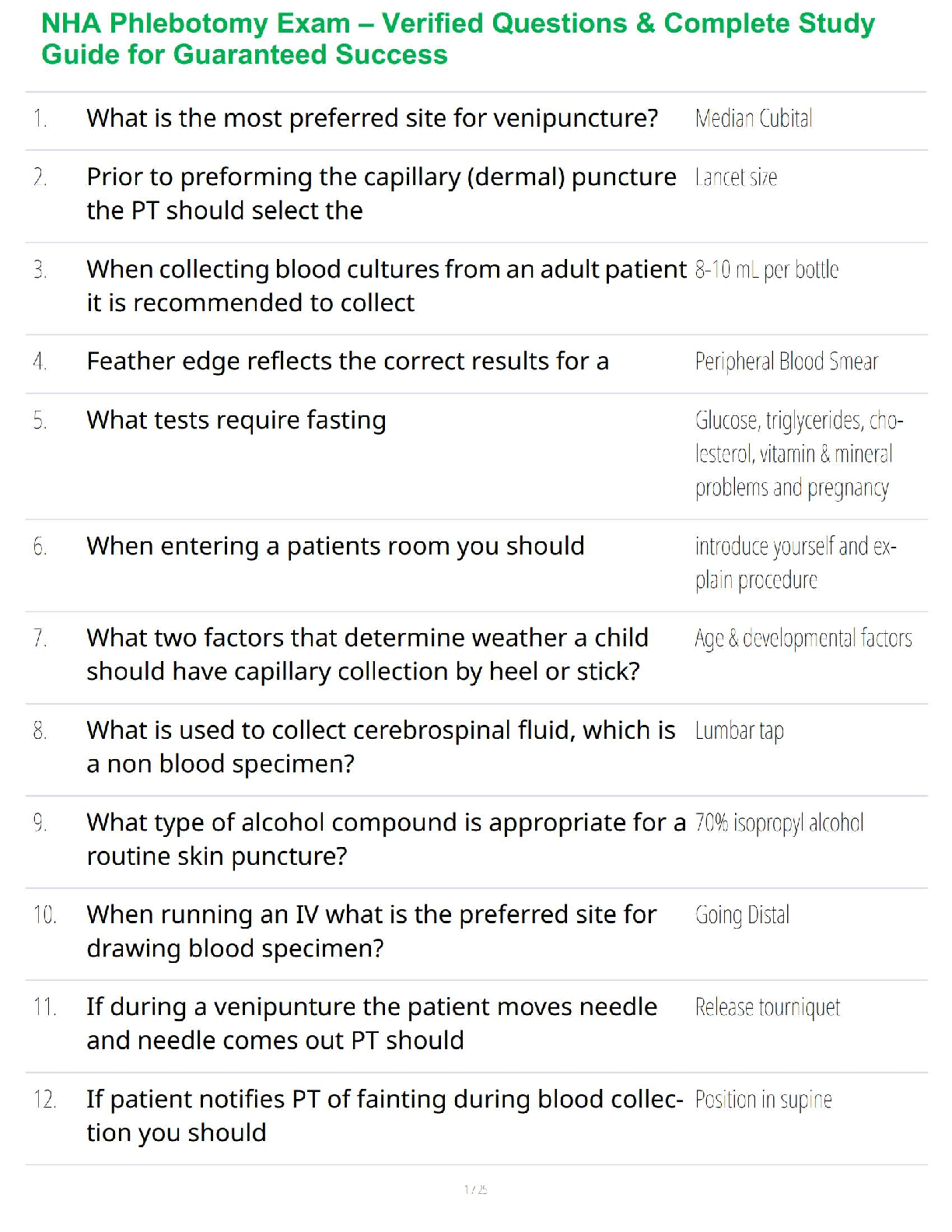 NHA phlebotomy > STUDY GUIDE > NHA Phlebotomy Exam – Verified Questions & Complete Study Guide for Guaranteed Success (All)