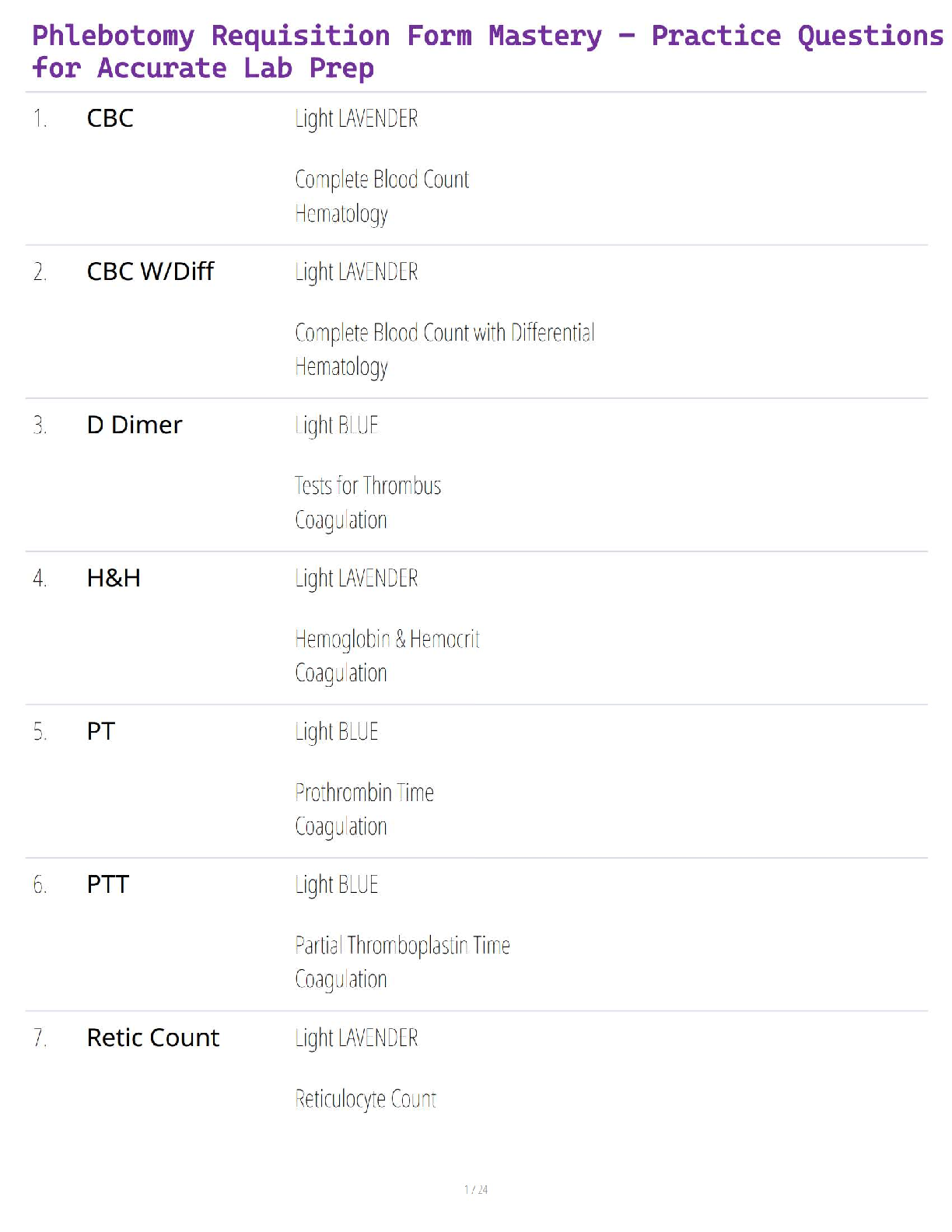 NHA phlebotomy > QUESTIONS and ANSWERS > Phlebotomy Requisition Form Mastery – Practice Questions for Accurate Lab Prep (All)