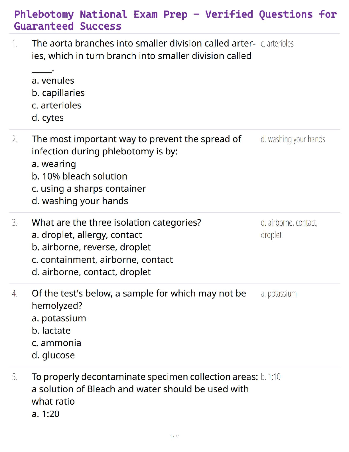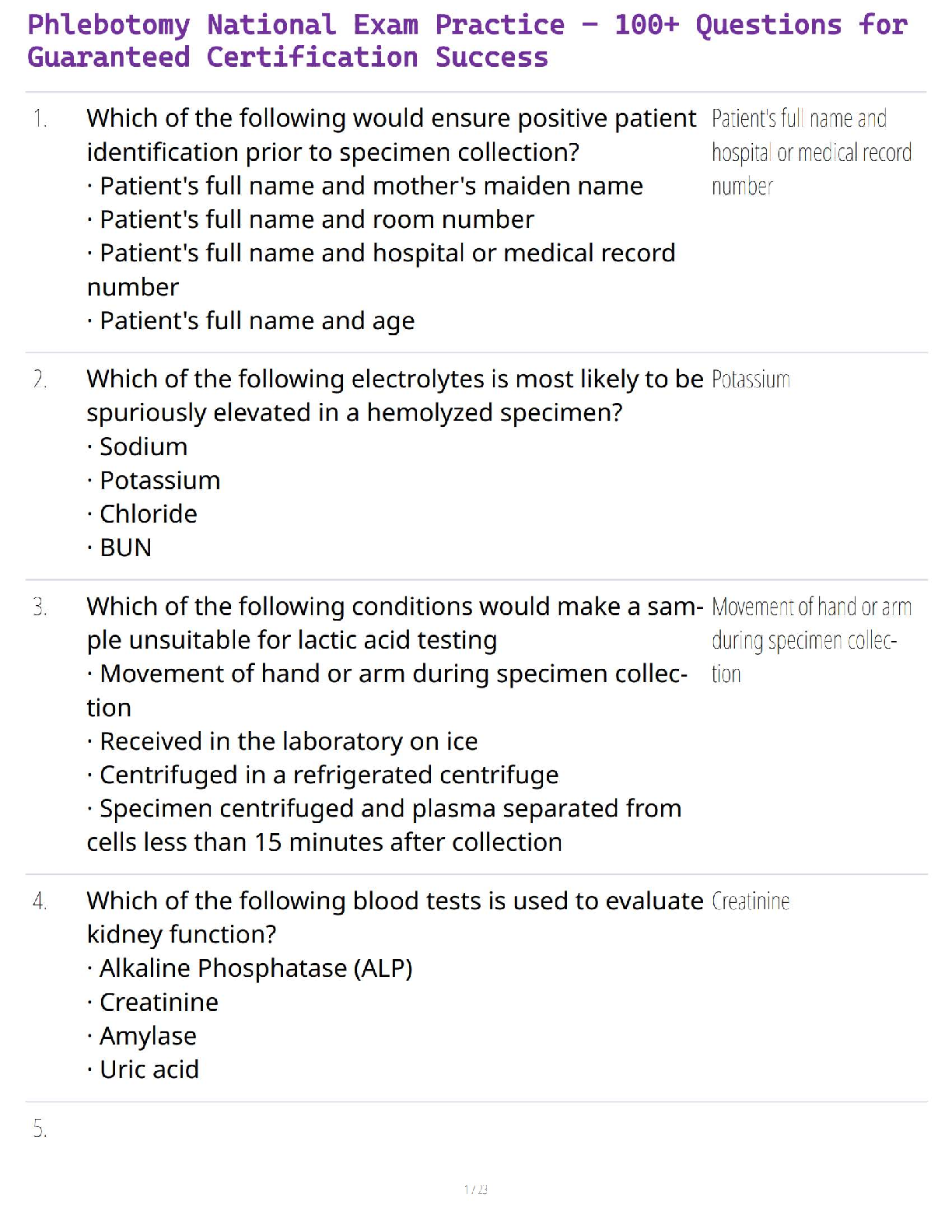 NHA phlebotomy > EXAM > Phlebotomy National Exam Practice – 100+ Questions for Guaranteed Certification Success (All)