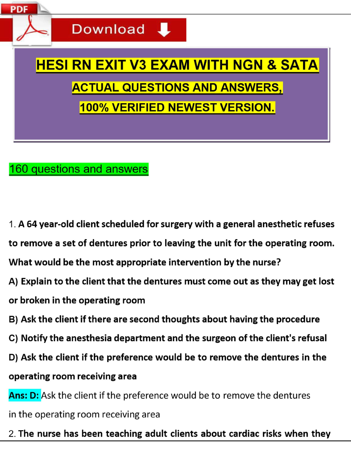 EXIT HESI EXAM > EXAM > PN HESI EXIT EXAM Version 1, Version 2, Version 3 TEST BANK (All)