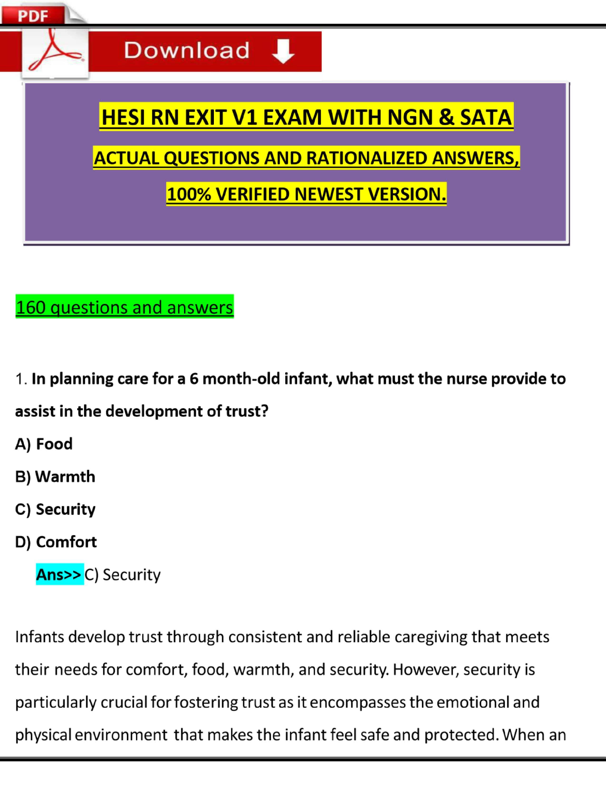 EXIT HESI EXAM > EXAM > HESI Exit Practice Questions with Rationale – Verified Correct Answers (Graded A+, Updated for 2025) (All)