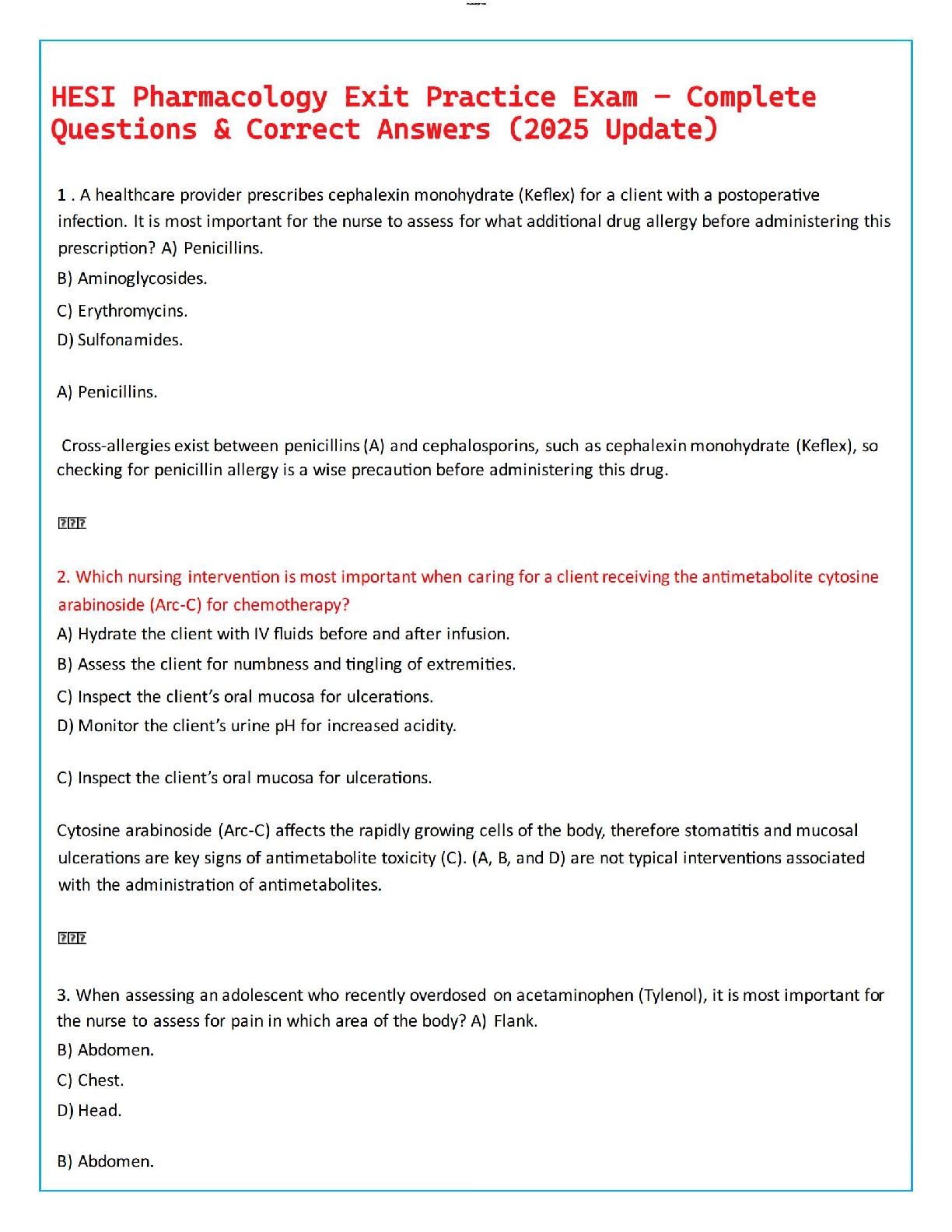EXIT HESI EXAM > EXAM > HESI Pharmacology Exit Practice Exam – Complete Questions & Correct Answers (2025 Update) (All)