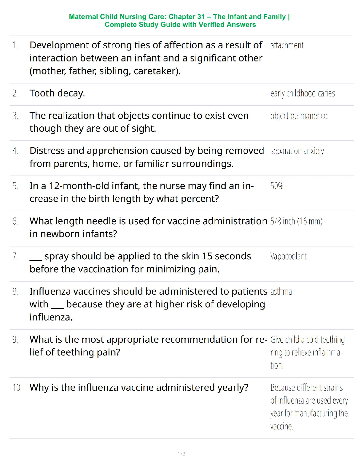 *NURSING > Study Notes > Maternal Child Nursing Care: Chapter 31 – The Infant and Family | Complete Study Guide with Verified Answers (All)