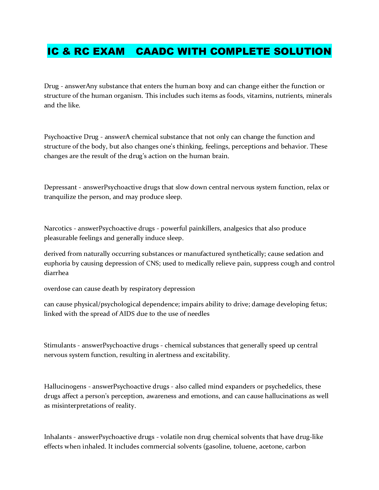 *NURSING > QUESTIONS & ANSWERS > IC & RC EXAM CAADC WITH COMPLETE SOLUTION (All)