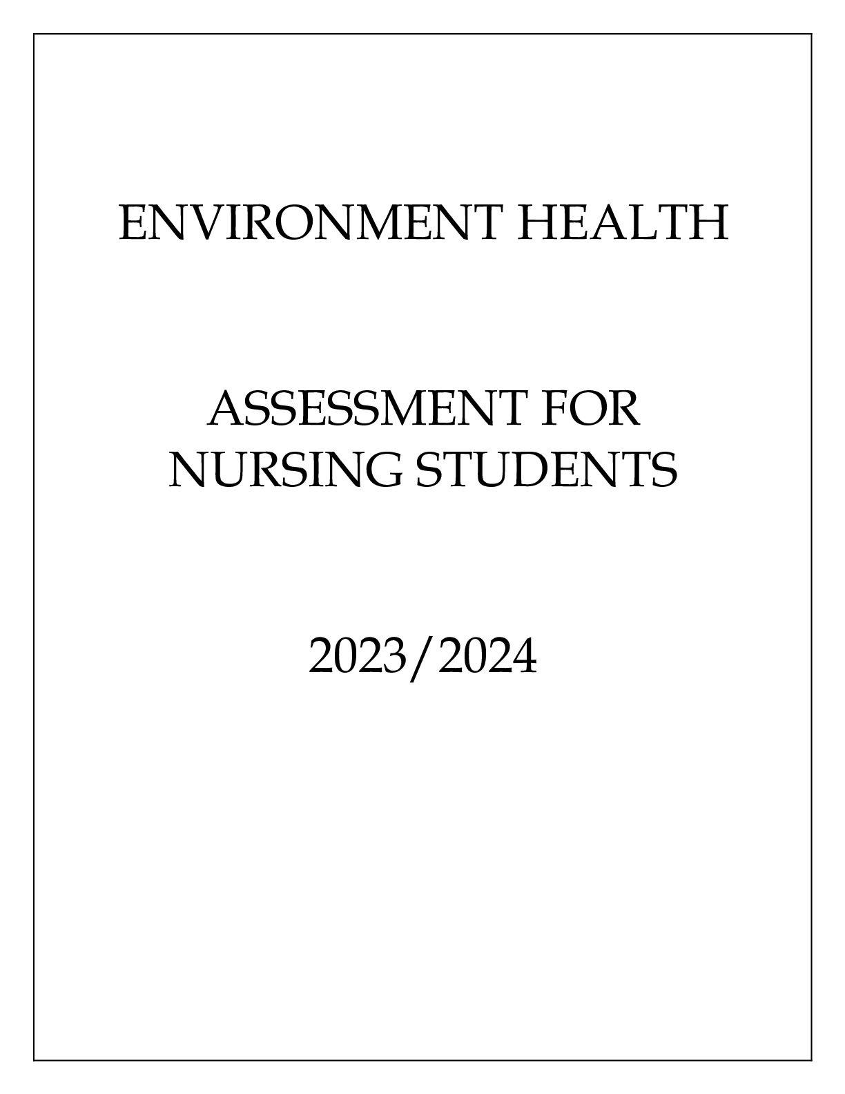 *NURSING > EXAM > ENVIRONMENT HEALTH ASSESSMENT FOR NURSING STDUENTS 20232024 (All)
