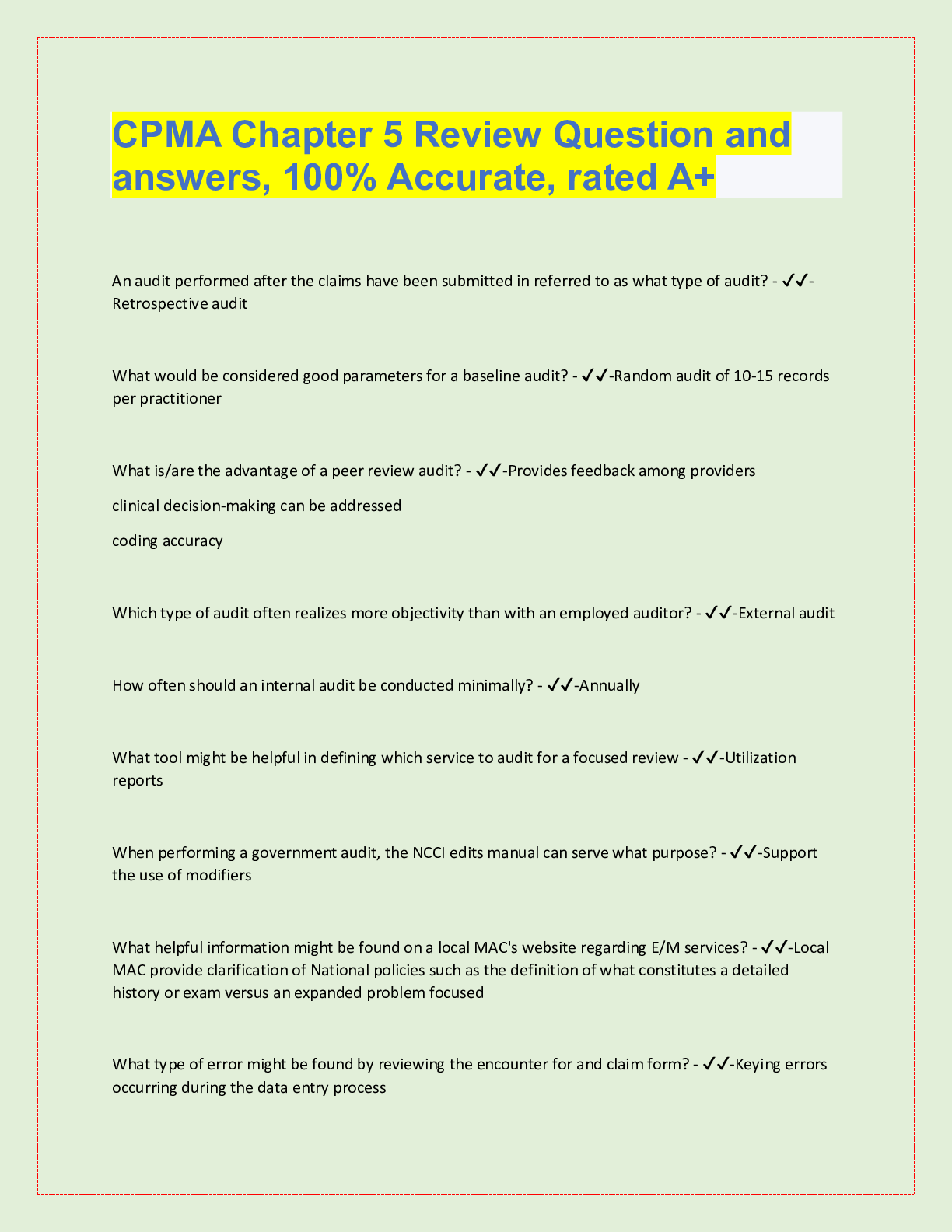 *NURSING > QUESTIONS & ANSWERS > CPMA Chapter 5 Review Question and answers, 100% Accurate, rated A+ (All)