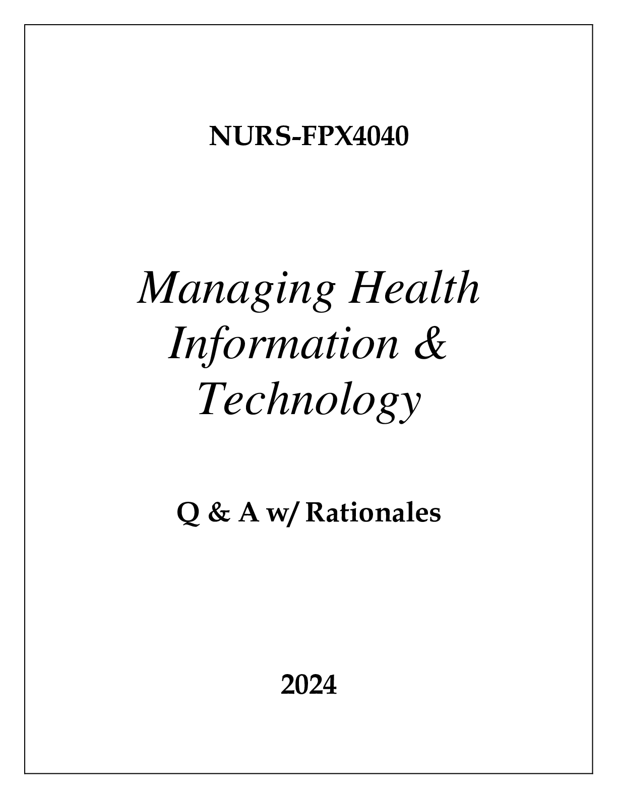 *NURSING > EXAM > NURS-FPX4040 MANAGING HEALTH INFORMATION & TECHNOLOGY EXAM Q & A WITH RATIONALES 2024 (All)
