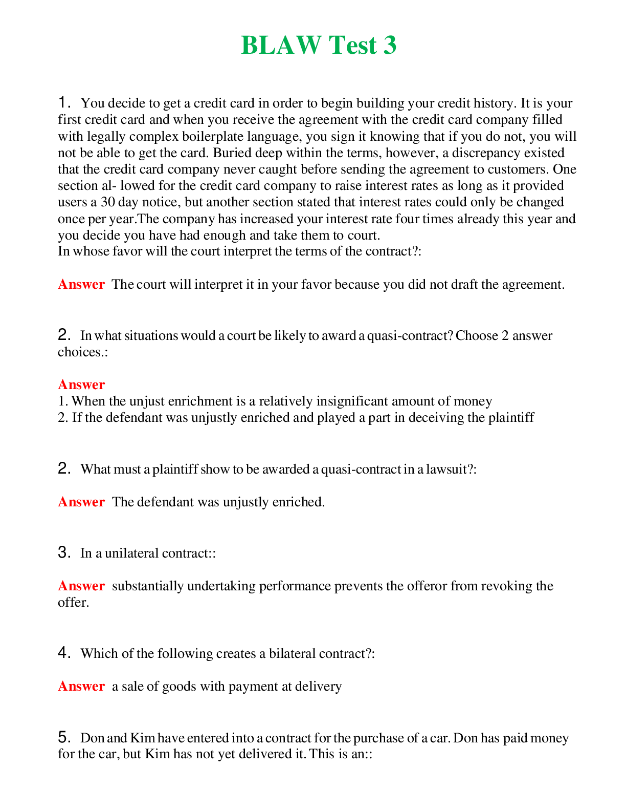 *NURSING > EXAM > BLAW Test 3 Questions With Complete Grade A+ Answers (All)