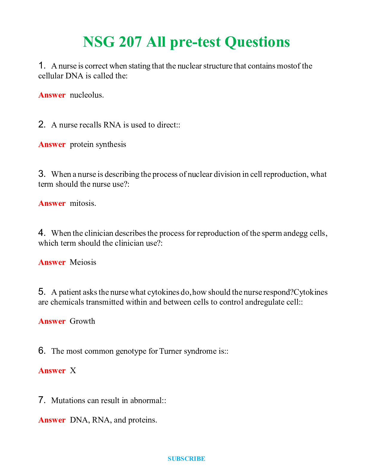 *NURSING > EXAM > NSG 207 All pre-test Questions | Questions & Answers with rationales (All)