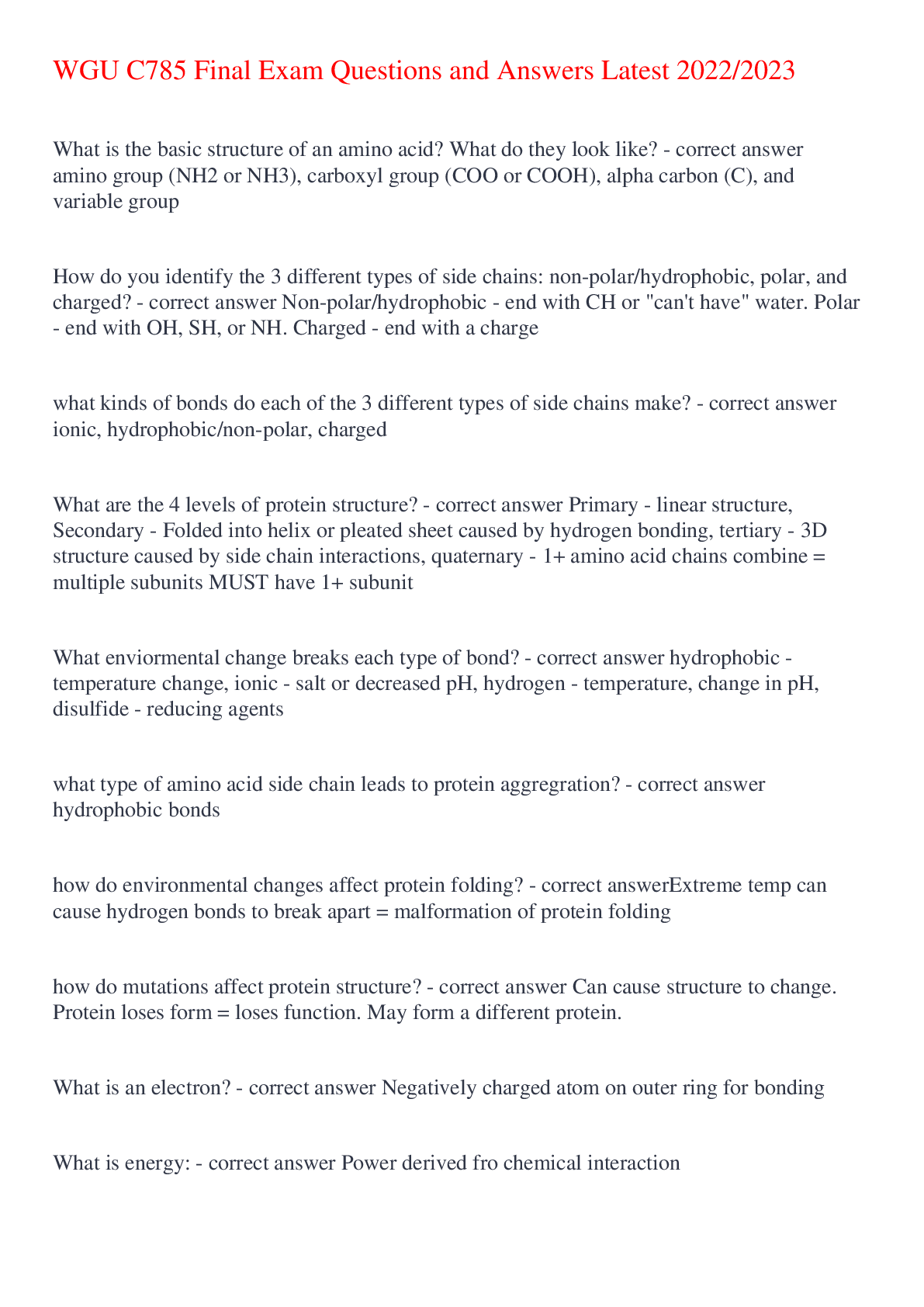 *NURSING > EXAM > WGU C785 Final Exam Questions and Answers Latest 2022/2023,100% CORRECT (All)