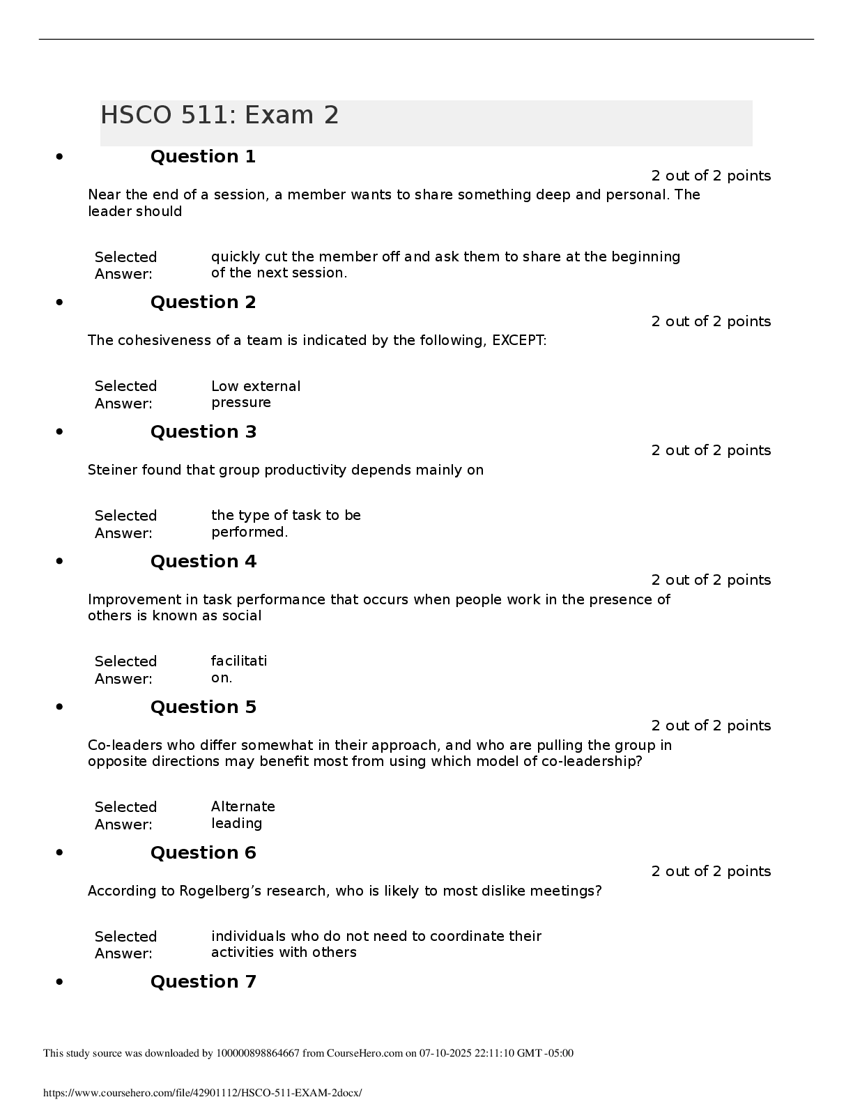 *NURSING > EXAM > HSCO 511 Exam 2 — Verified Questions & Correct Answers | Liberty University Counseling Exam Prep (All)