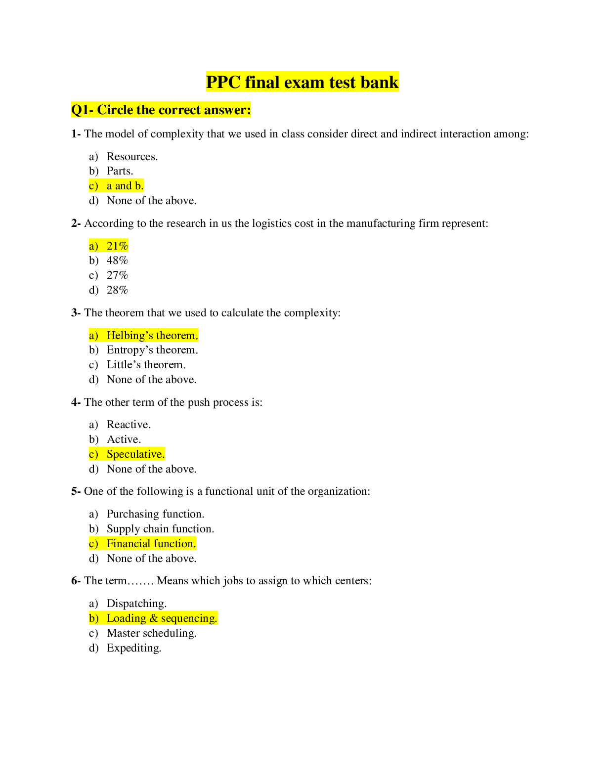 *NURSING > EXAM > PPC final exam test bank solution (All)