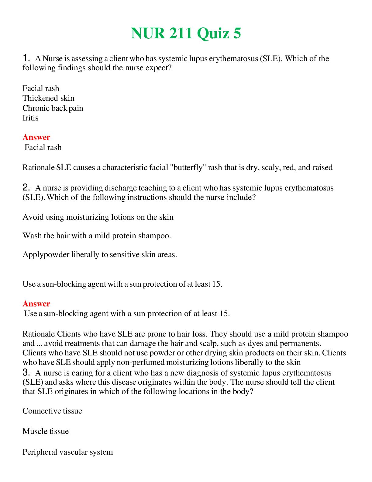 *NURSING > EXAM > NUR 211 QUIZ 5 | COMPLETE ANSWERS 100% CORRECT (All)