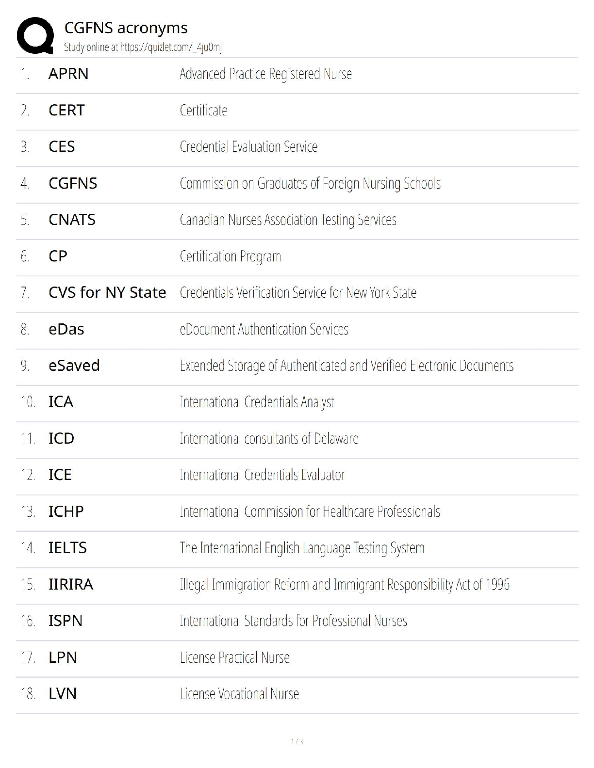 *NURSING > QUESTIONS and ANSWERS > CGFNS / Acronym Meaning / Score 100% / 2025 Update / Nursing Exam Study Guide (All)