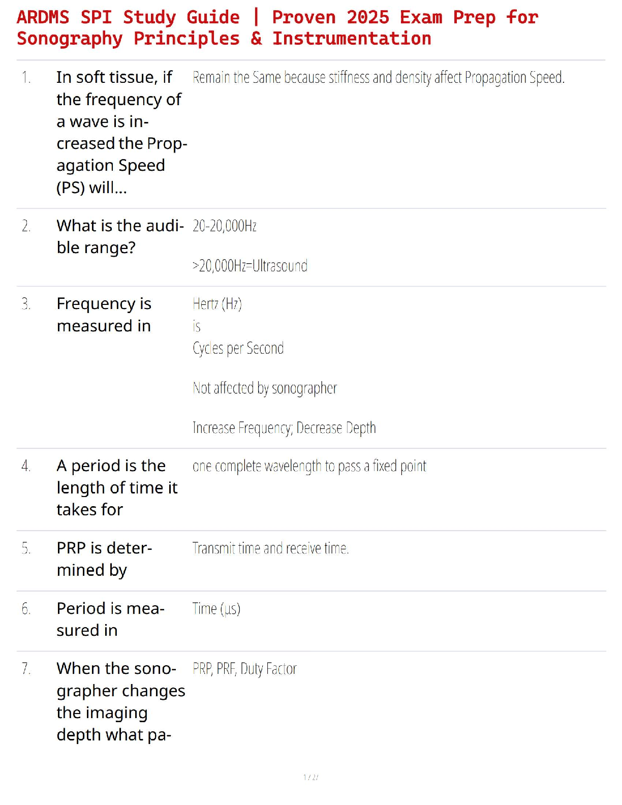 *NURSING > STUDY GUIDE > ARDMS SPI Study Guide | Proven 2025 Exam Prep for Sonography Principles & Instrumentation (All)