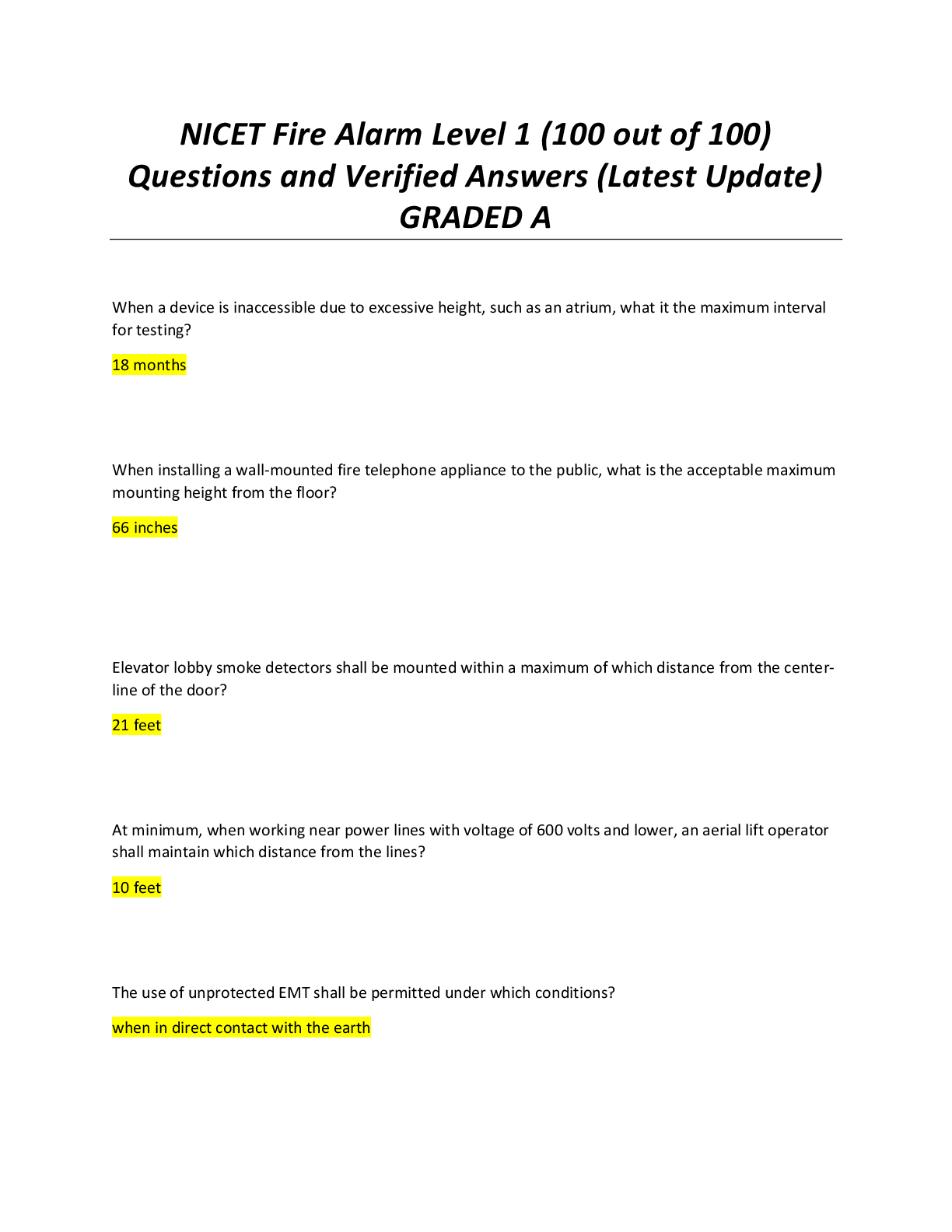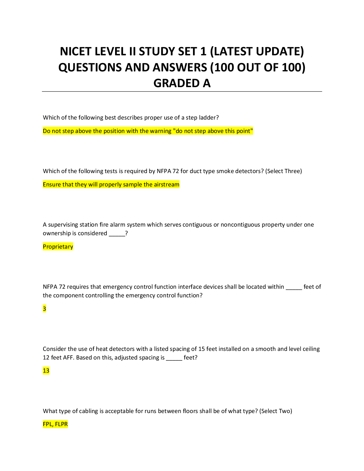 *NURSING > EXAM > NICET Fire Alarm Level 1 (100 out of 100) Questions and Verified Answers (Latest Update) GRADED A