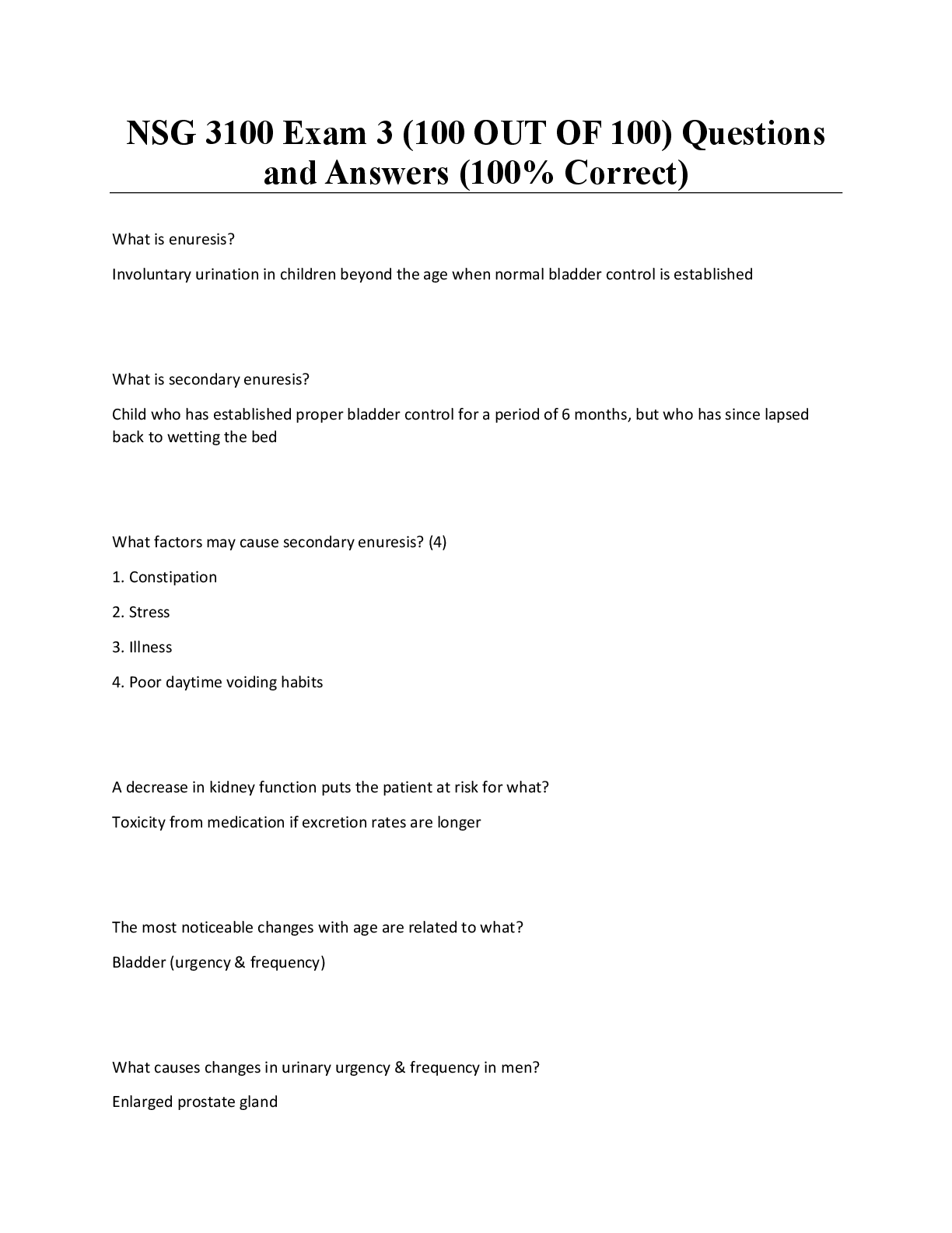 *NURSING > EXAM > NSG 3100 Exam 3 (100 OUT OF 100) Questions and Answers (100% Correct)