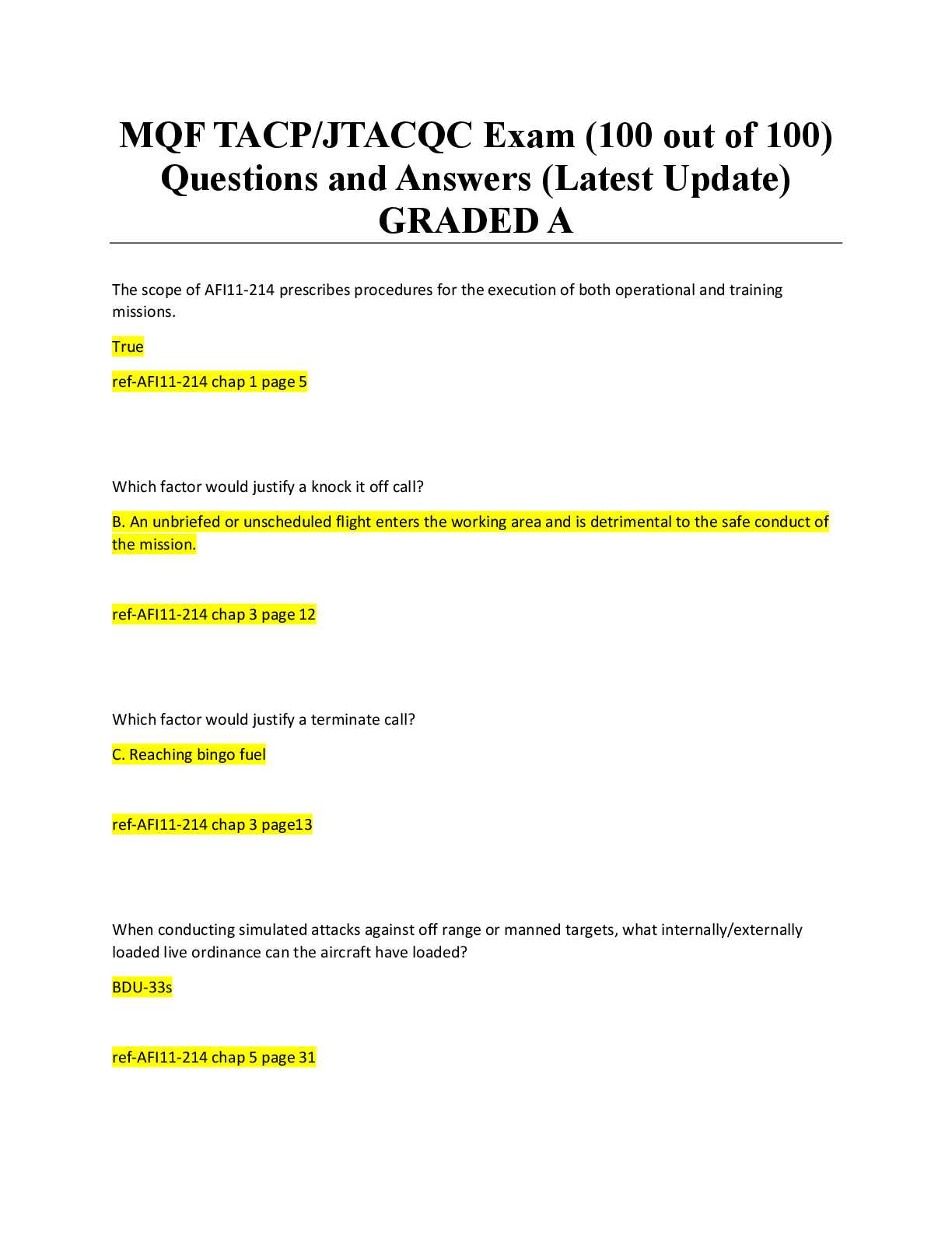 *NURSING > EXAM > MQF TACP JTACQC Exam (100 out of 100) Questions and Answers (Latest Update) GRADED A