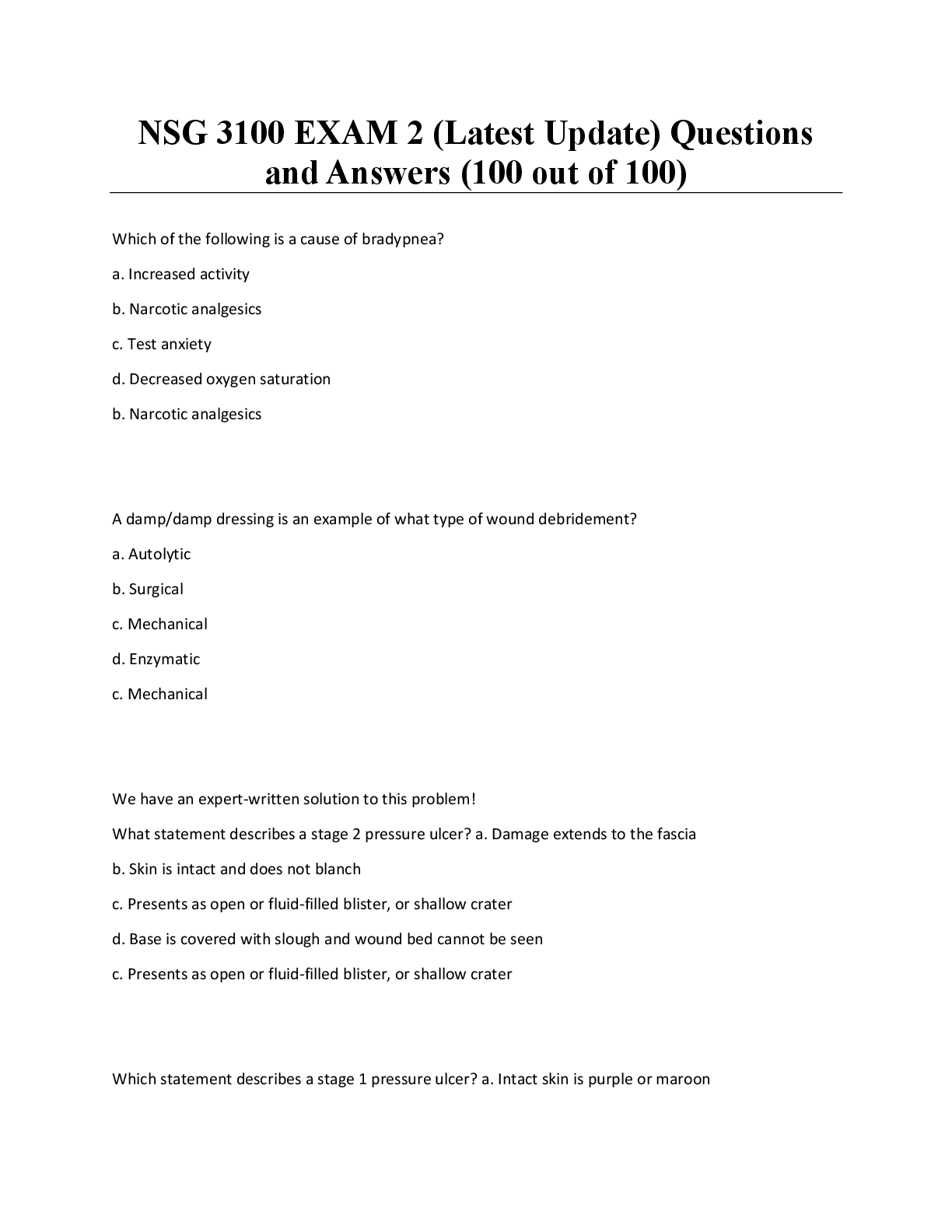 *NURSING > EXAM > NSG 3100 EXAM 2 (Latest Update) Questions and Answers (100 out of 100)