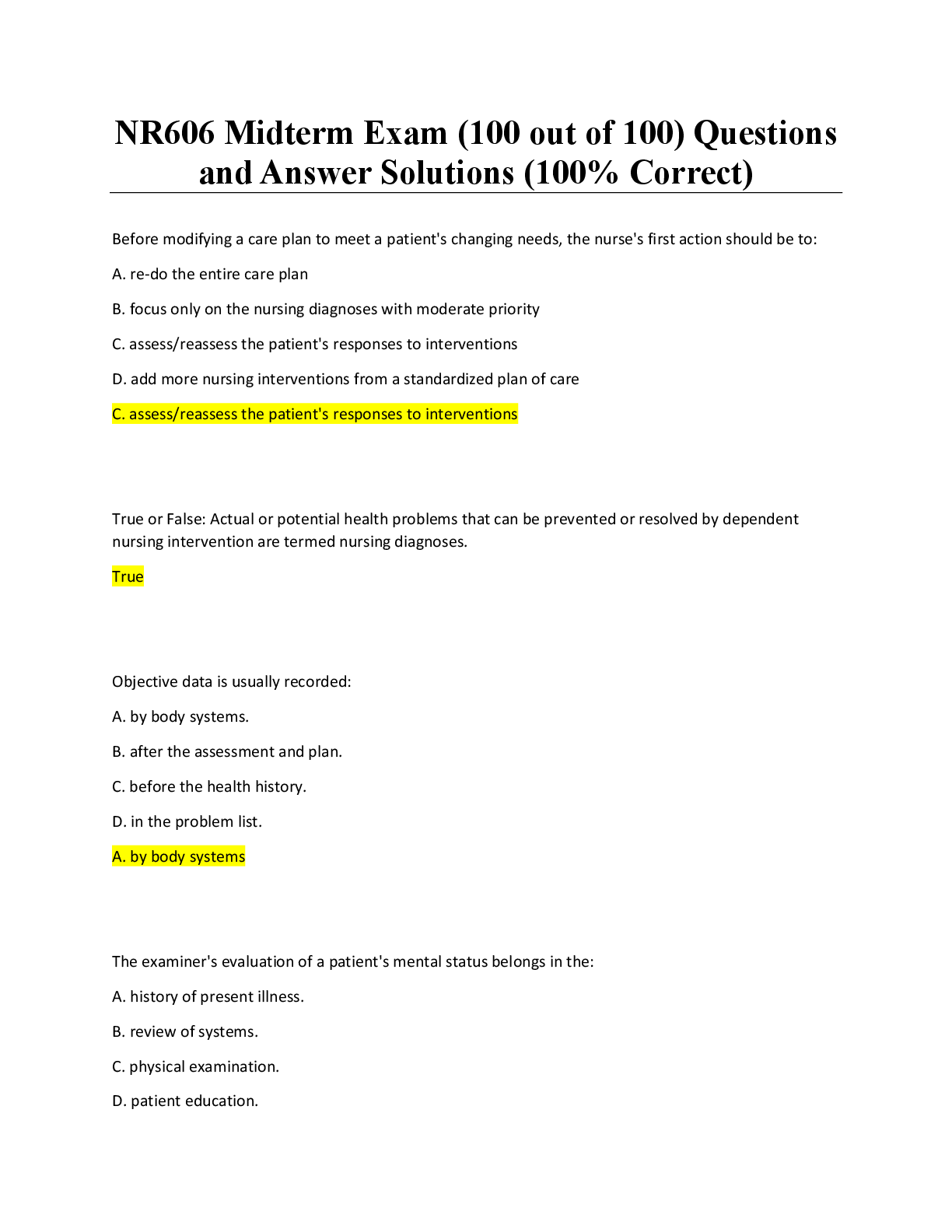 *NURSING > EXAM > NR606 Midterm Exam (100 out of 100) Questions and Answer Solutions (100% Correct)