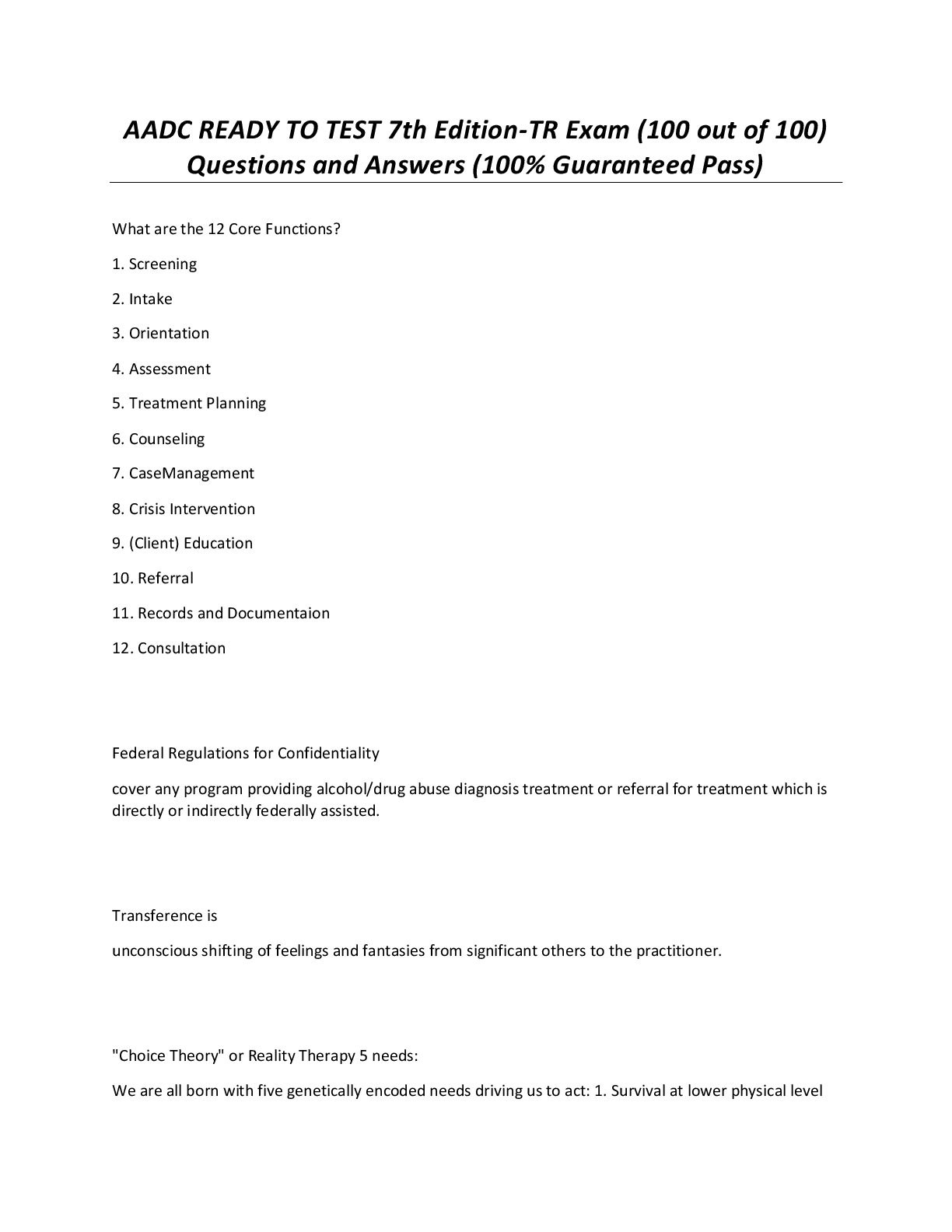 *NURSING > EXAM > Alcohol and Drug Counselor Exam Practice Problems (Latest Update) Questions and Answers (100 OUT OF 100)