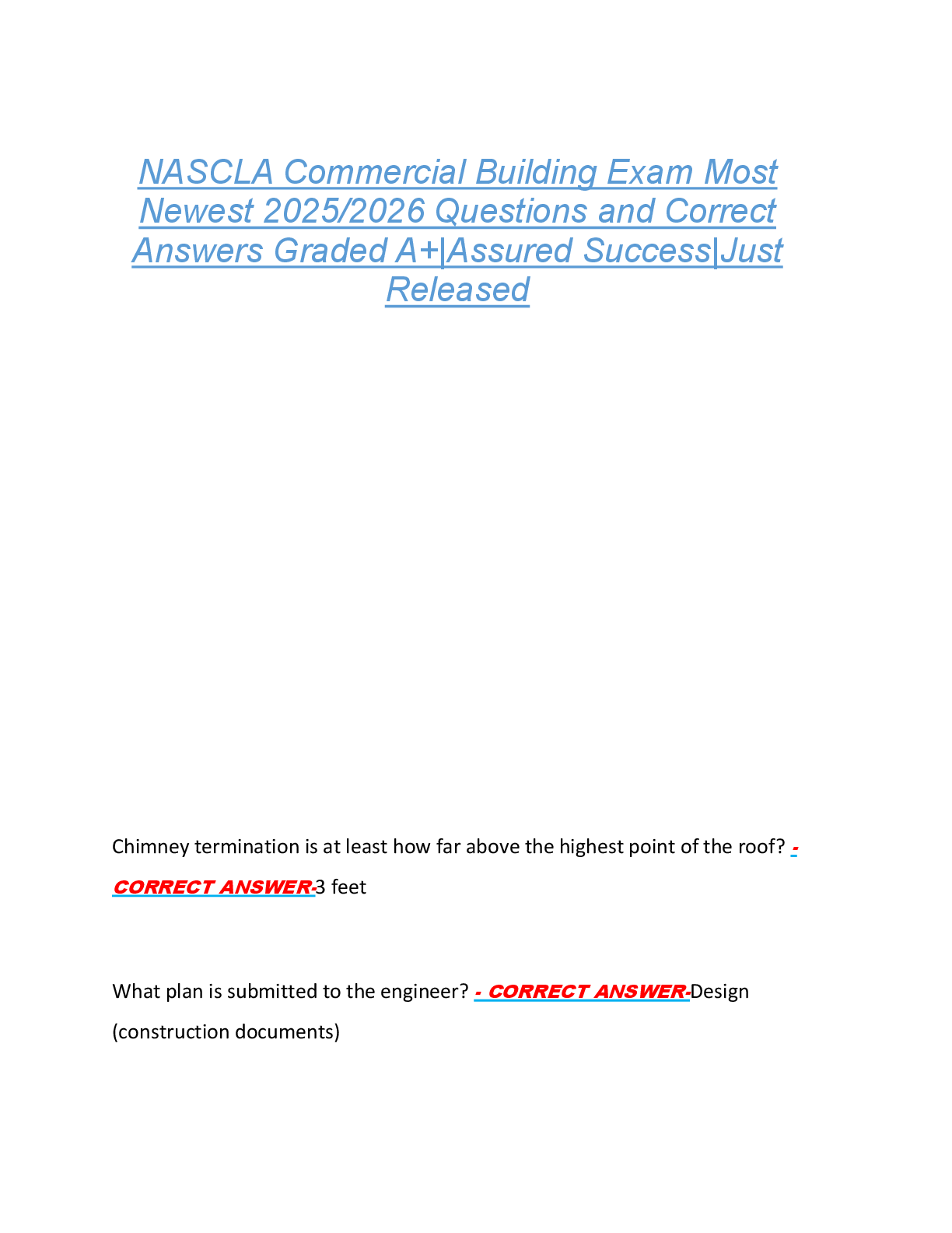 *NURSING > EXAM > NASCLA Commercial Building Exam Newest 2025/2026 Questions and Correct Answers Already Graded A+|Assured Success