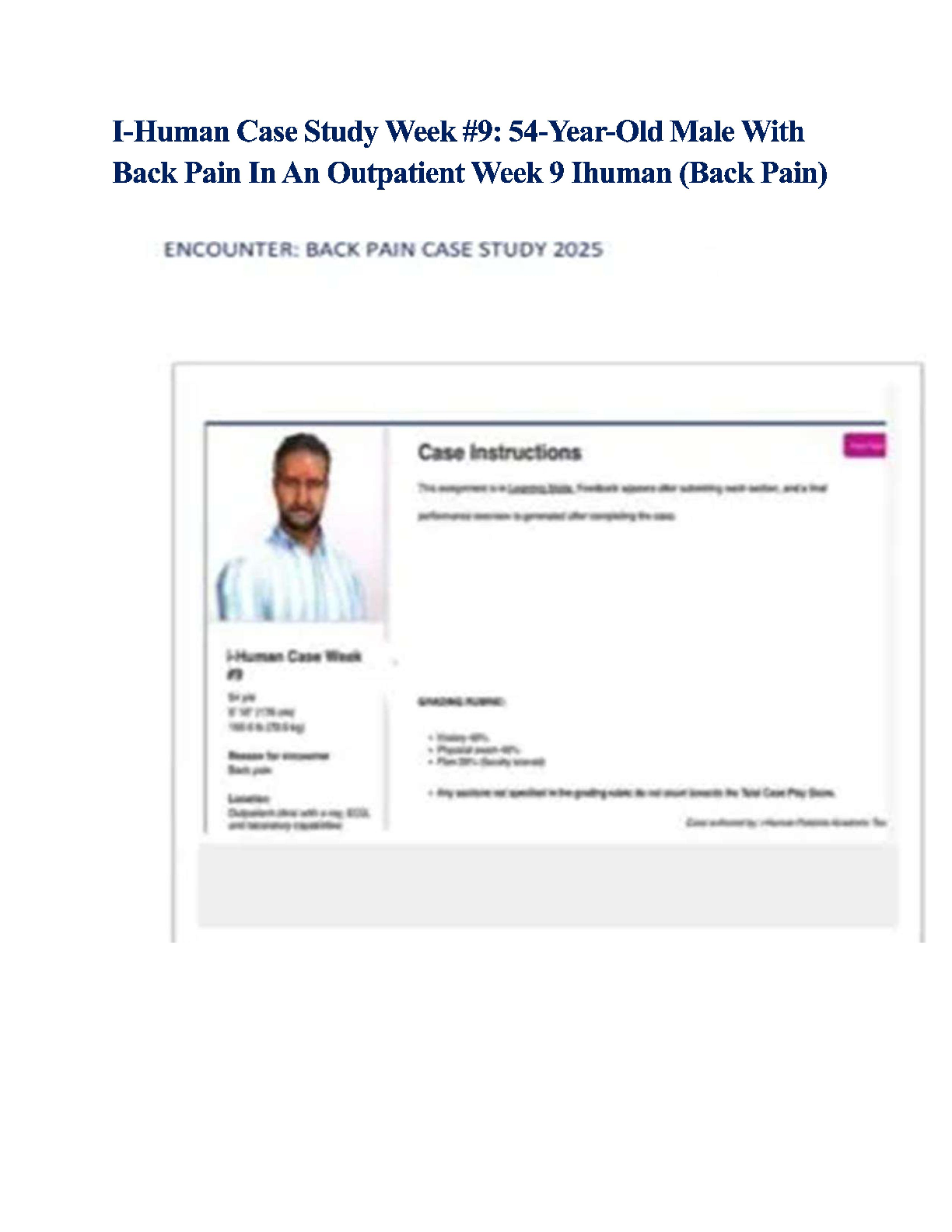 *NURSING > EXAM > I-Human Case Study Week #9: 54-Year-Old Male With Back Pain In An Outpatient Week 9 Thuman (Back Pain)