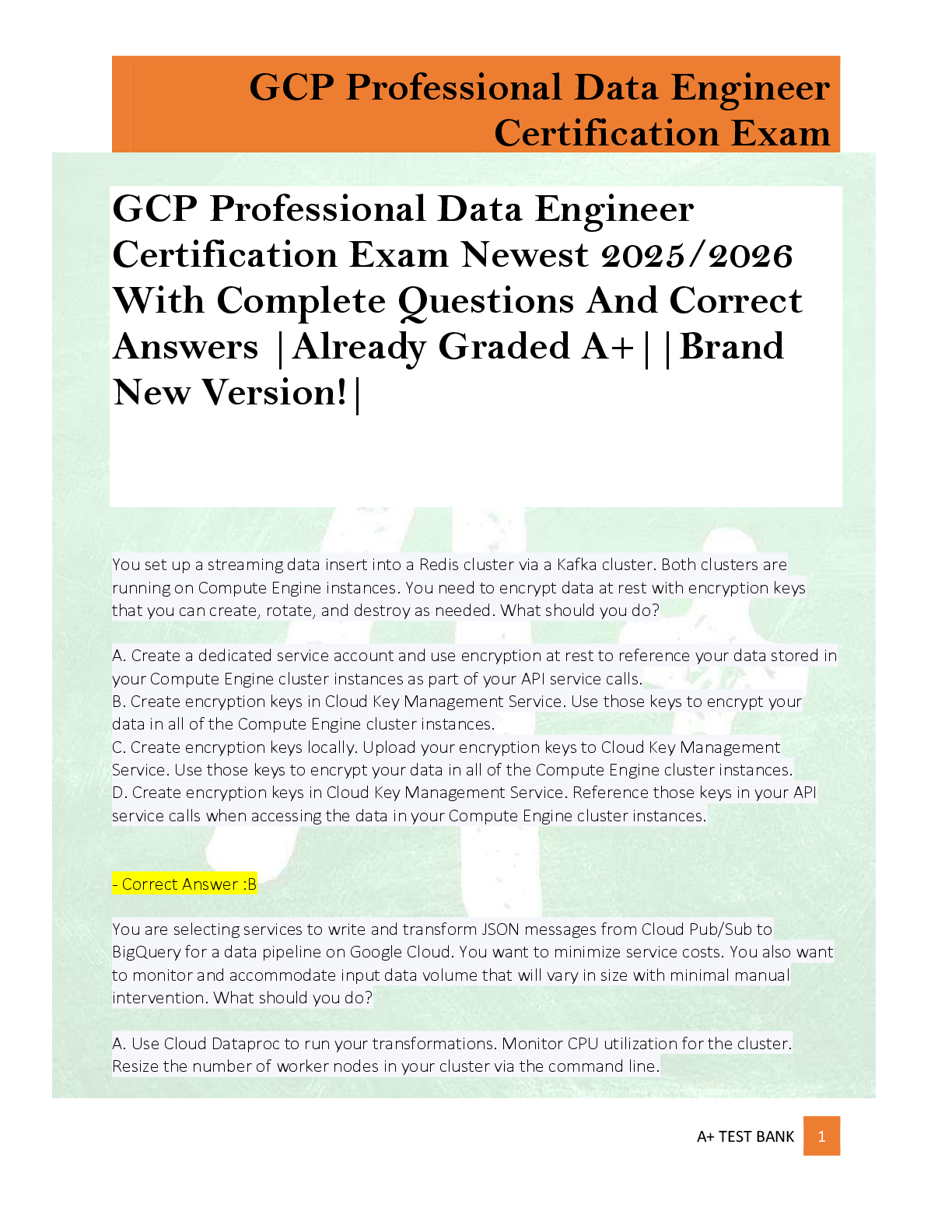 *NURSING > EXAM > GCP Professional Data Engineer Certification Exam Newest 2025/2026 With Complete Questions And Correct Answers |Already Graded A+||Brand New Version!|