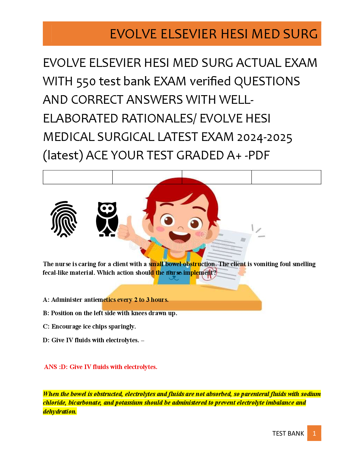 *NURSING > EXAM > EVOLVE ELSEVIER HESI MED SURG ACTUAL EXAM WITH 550 test bank EXAM verified QUESTIONS AND CORRECT ANSWERS WITH WELL-ELABORATED RATIONALES/ EVOLVE HESI MEDICAL SURGICAL LATEST EXAM 2024 2025 (latest) ACE YOUR TEST GRADED A+ PDF