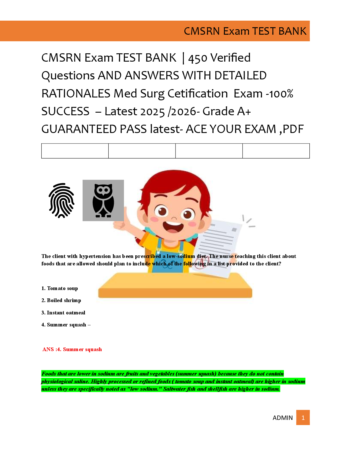 *NURSING > EXAM > CMSRN Exam TEST BANK | 450 Verified Questions AND ANSWERS WITH DETAILED RATIONALES Med Surg Cetification Exam -100% SUCCESS – Latest 2025 /2026- Grade A+ GUARANTEED PASS latest- ACE YOUR EXAM ,PDF