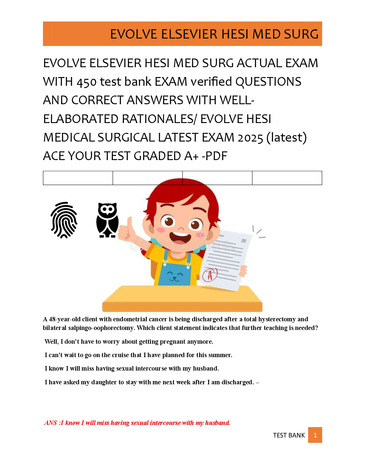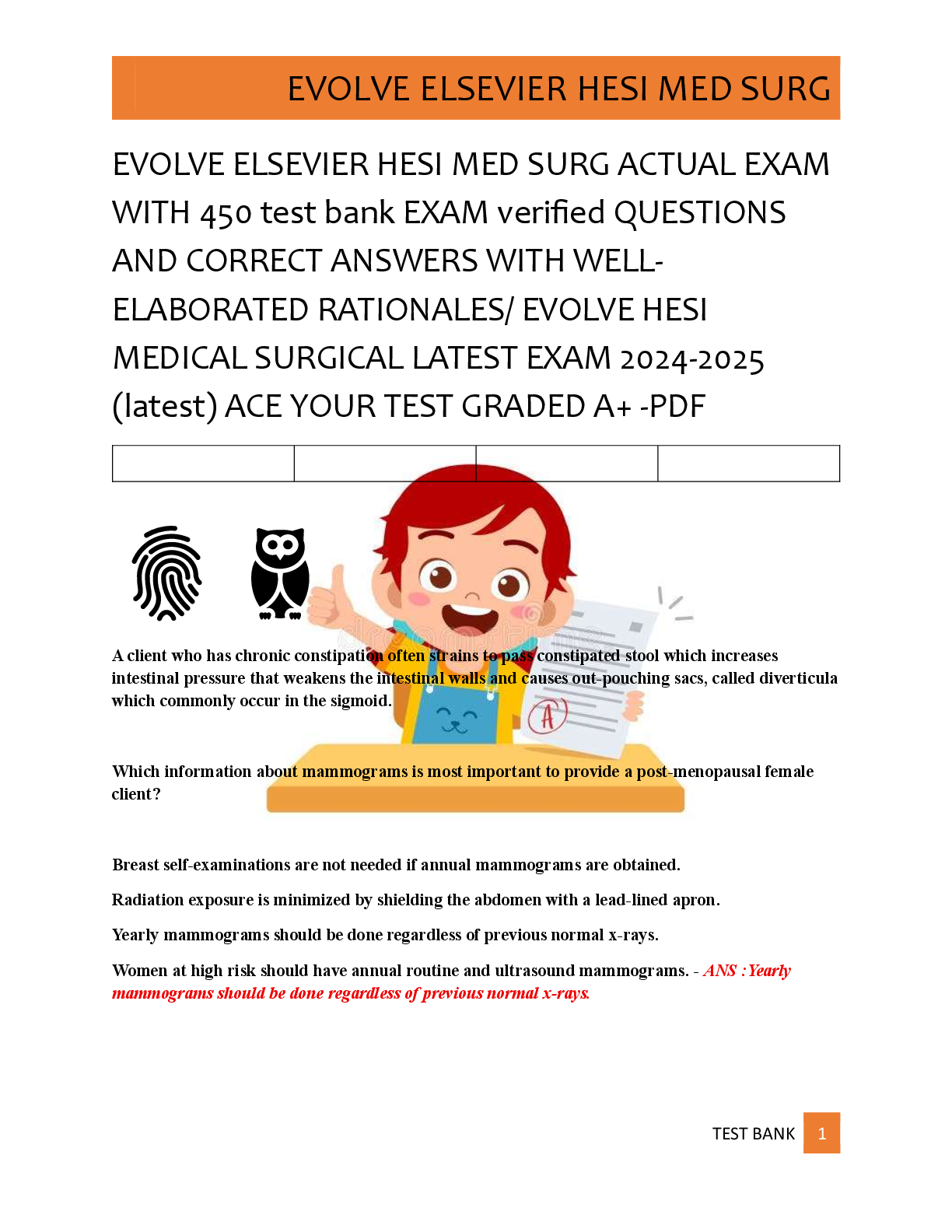 *NURSING > EXAM > EVOLVE ELSEVIER HESI MED SURG ACTUAL EXAM WITH 450 test bank EXAM verified QUESTIONS AND ANSWERS WITH WELL-ELABORATED RATIONALES/ EVOLVE HESI MEDICAL SURGICAL LATEST EXAM 2025 (latest) ACE YOUR TEST GRADED A+ -PDF