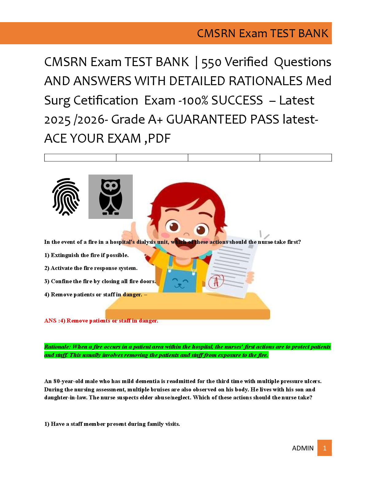*NURSING > EXAM > CMSRN Exam TEST BANK | 550 Verified Questions AND ANSWERS WITH DETAILED RATIONALES Med Surg Cetification Exam -100% SUCCESS – Latest 2025 /2026- Grade A+ GUARANTEED PASS latest- ACE YOUR EXAM ,PDF