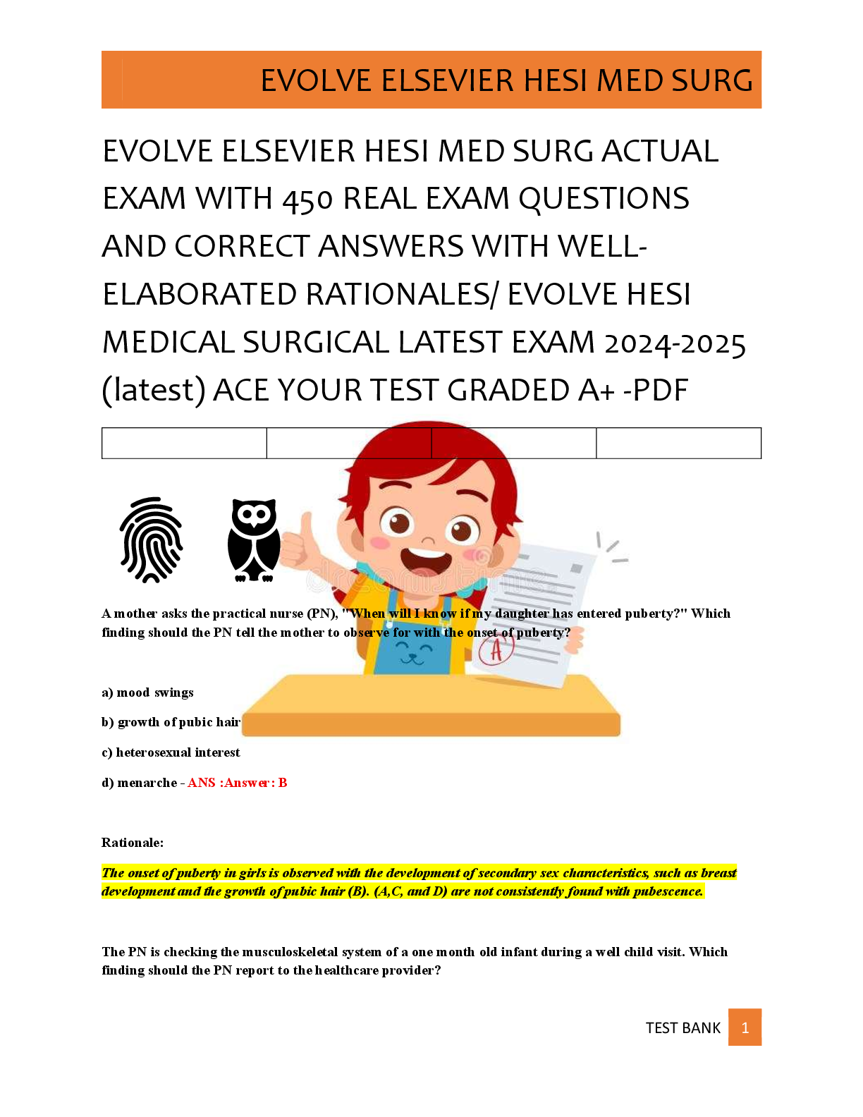 *NURSING > EXAM > EVOLVE ELSEVIER HESI MED SURG ACTUAL EXAM WITH 450 test bank EXAM verified QUESTIONS AND CORRECT ANSWERS WITH WELL ELABORATED RATIONALES/ EVOLVE HESI MEDICAL SURGICAL LATEST EXAM 2025 (latest) ACE YOUR TEST GRADED A+ -PDF