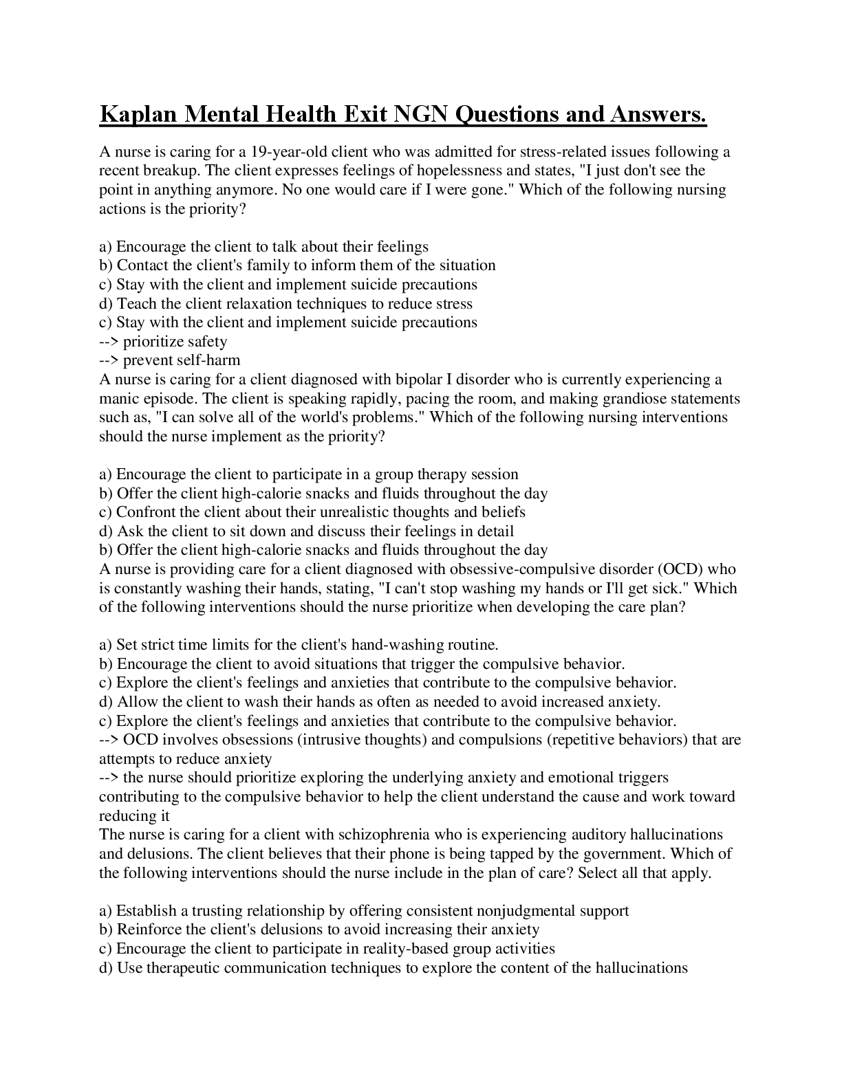 *NURSING > EXAM > Kaplan Mental Health Exit NGN Questions and Answers.
