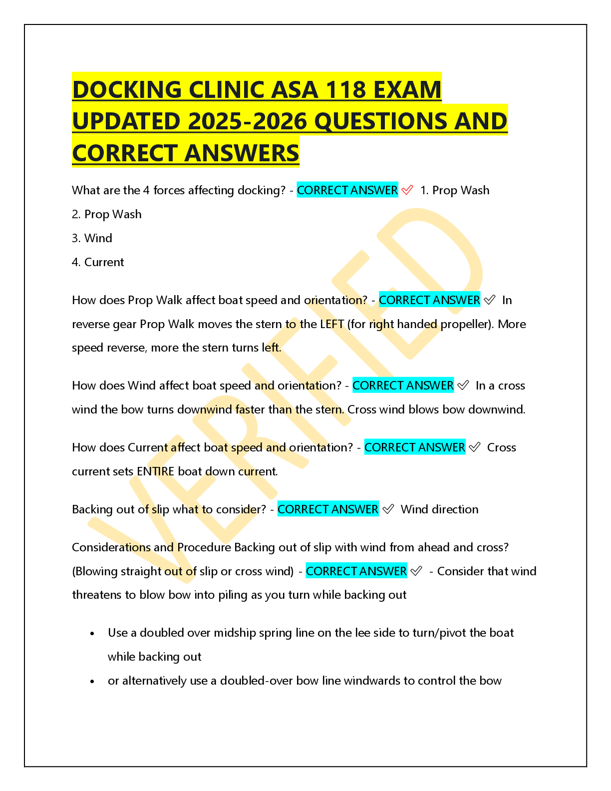 Boat Ed > EXAM > DOCKING CLINIC ASA 118 EXAM UPDATED 2025-2026 QUESTIONS AND CORRECT ANSWERS