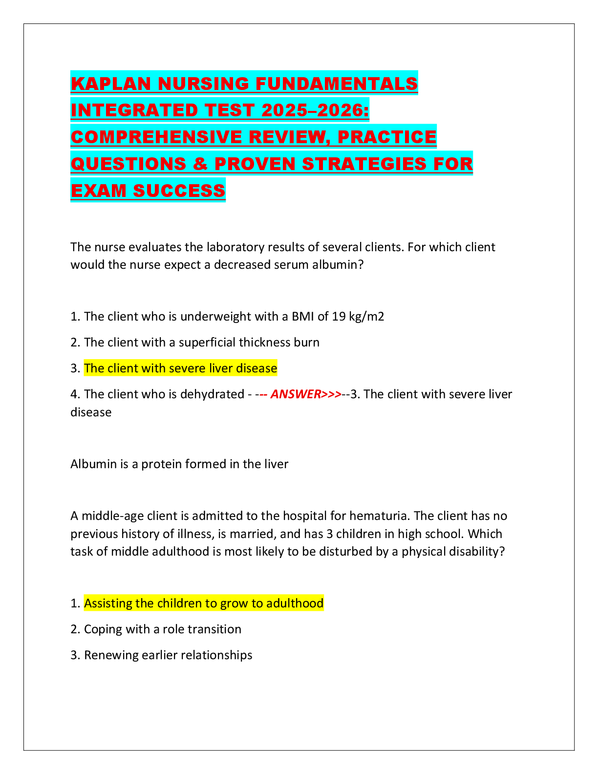 *NURSING > EXAM > KAPLAN NURSING FUNDAMENTALS INTEGRATED TEST 2025–2026: COMPREHENSIVE REVIEW, PRACTICE QUESTIONS & PROVEN STRATEGIES FOR EXAM SUCCESS
