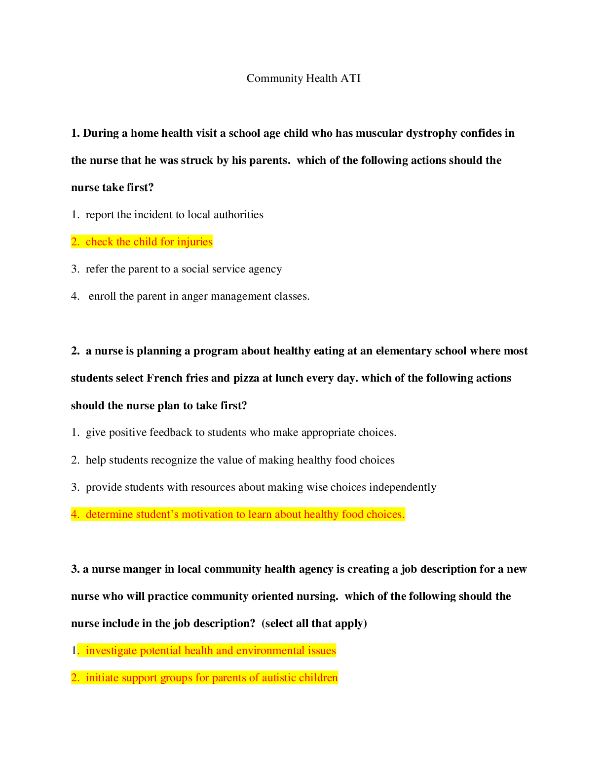 *NURSING > A-Level Question Paper > ATI Community Practice Questions, Revision Study Guides