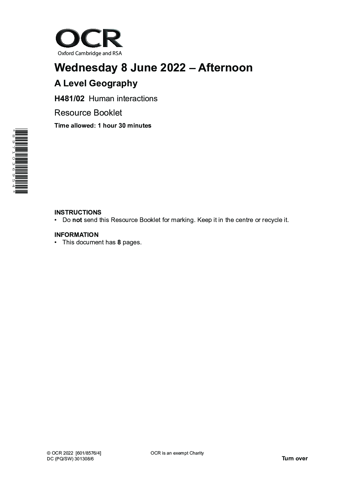 Mathematics > A-Level Question Paper > OCR A LEVEL JUNE 2022 GEOGRAPHY HUMAN INTERACTIONS - RESOURCE BOOKLET