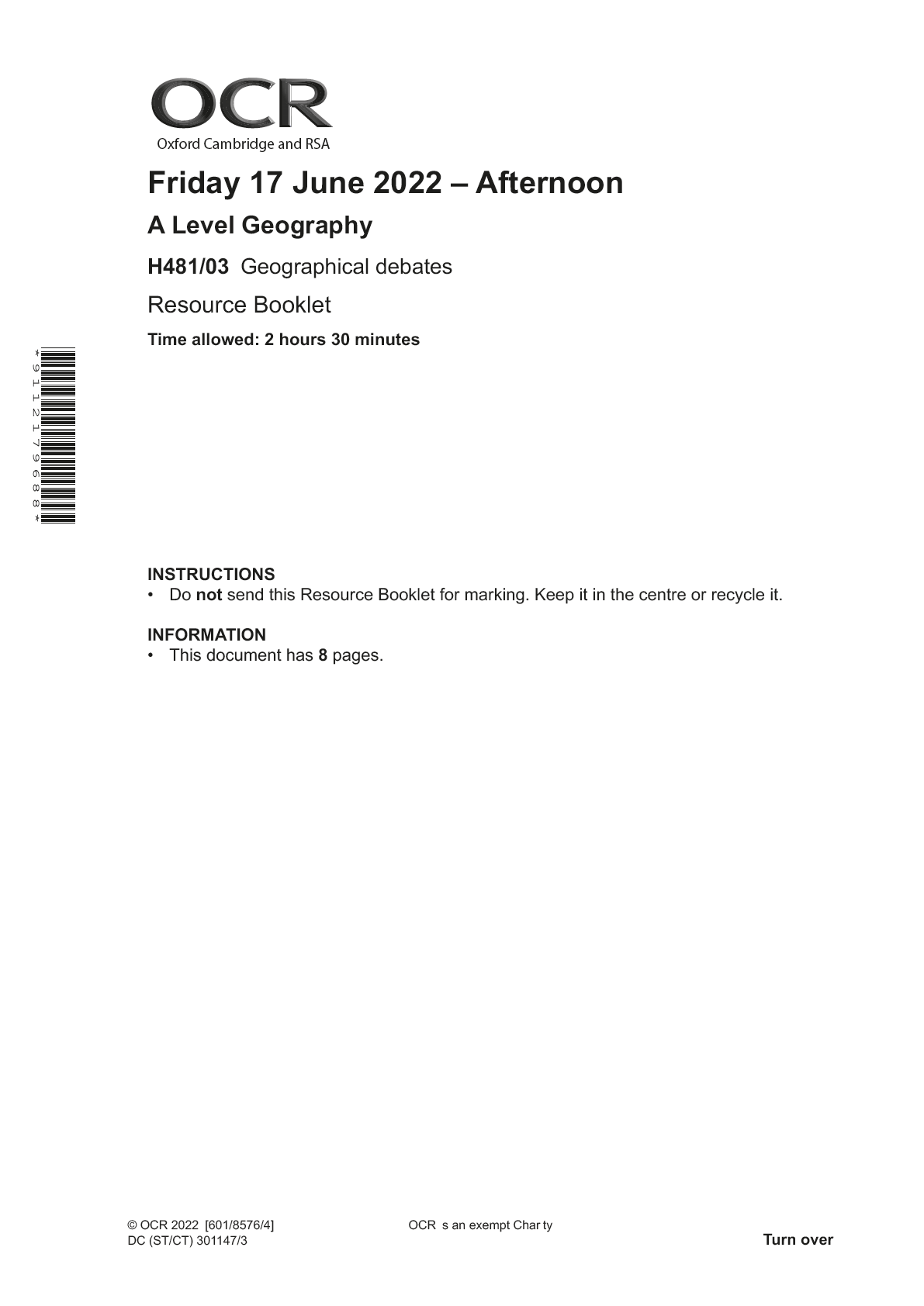 Mathematics > A-Level Question Paper > OCR A LEVEL JUNE 2022 GEOGRAPHY - GEOGRAPHICAL DEBATES - RESOURCE BOOKLET