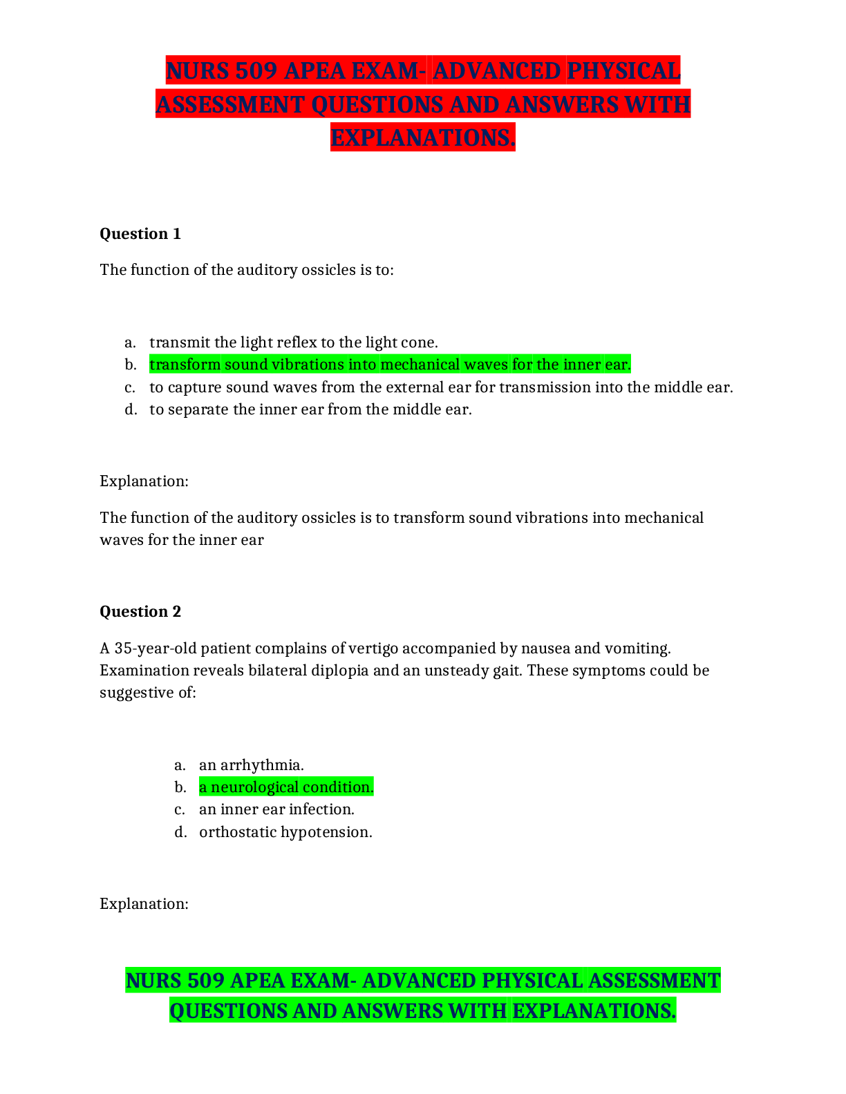 *NURSING > EXAM/TEST TEMPLATE > CHAMBERLAIN COLLEGE OF NURSING NR 509 APEA TEST HEENT NR 509 APEA EXAM 2019 HEENT ADVANCED PHYSI