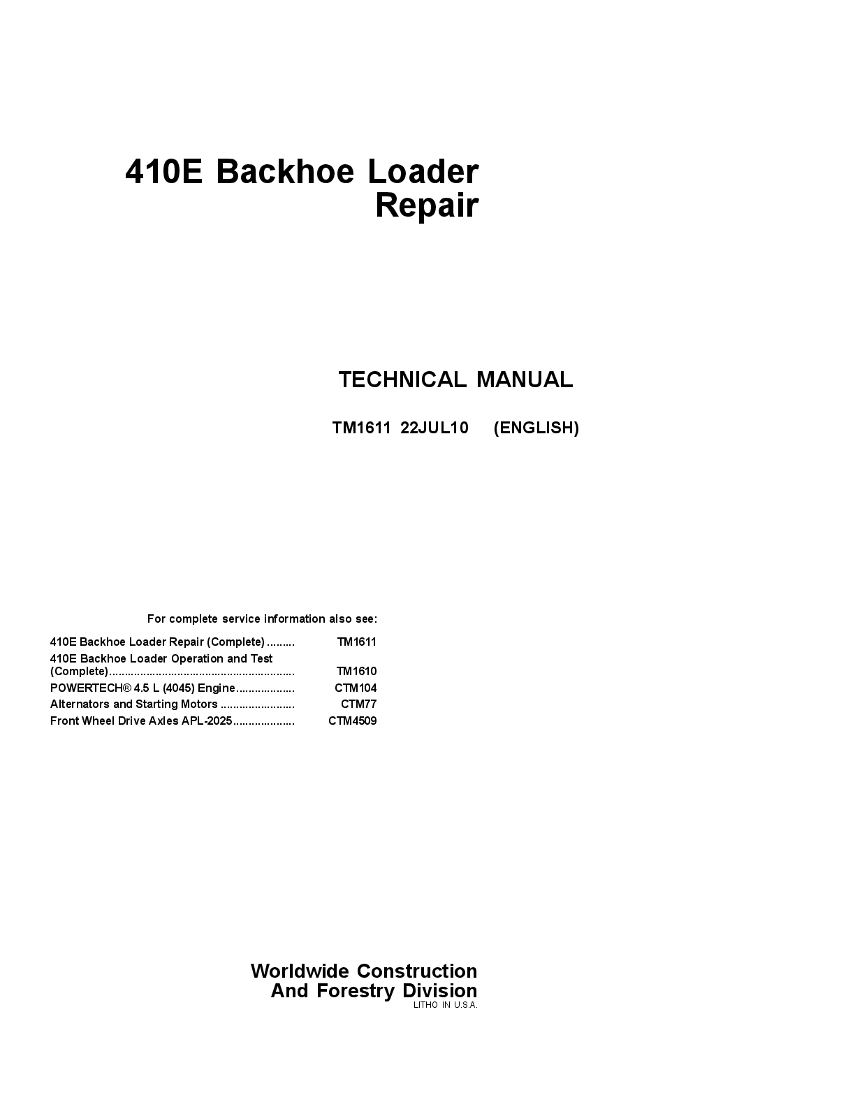 Education > Manual > JOHN DEERE 410E BACKHOE LOADER SERVICE ENGINE REPAIR MANUAL