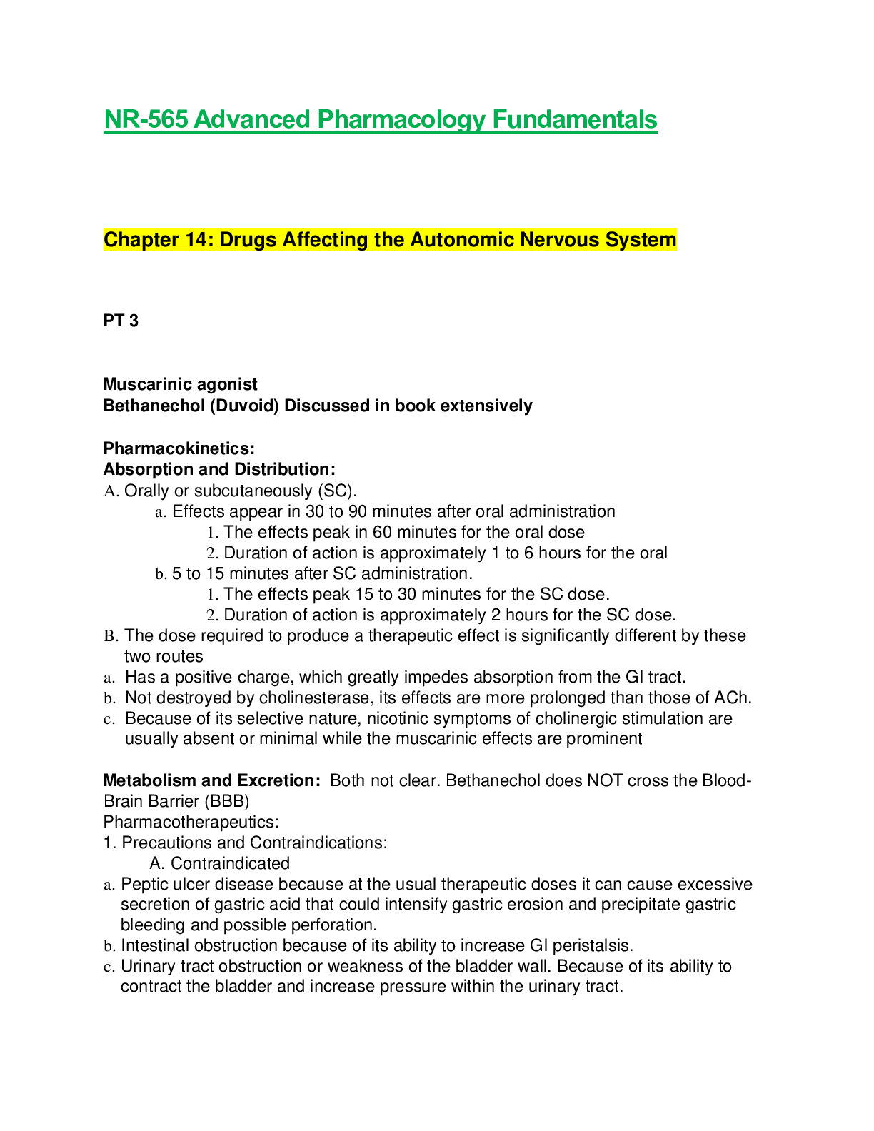 *NURSING > Summary > NR565 / NR 565: Advanced Pharmacology Fundamentals Week 3 Chapter 14 Notes (3) - Drugs Affecting the Autonomic Nervous System Latest Update Chamberlain College Of Nursing