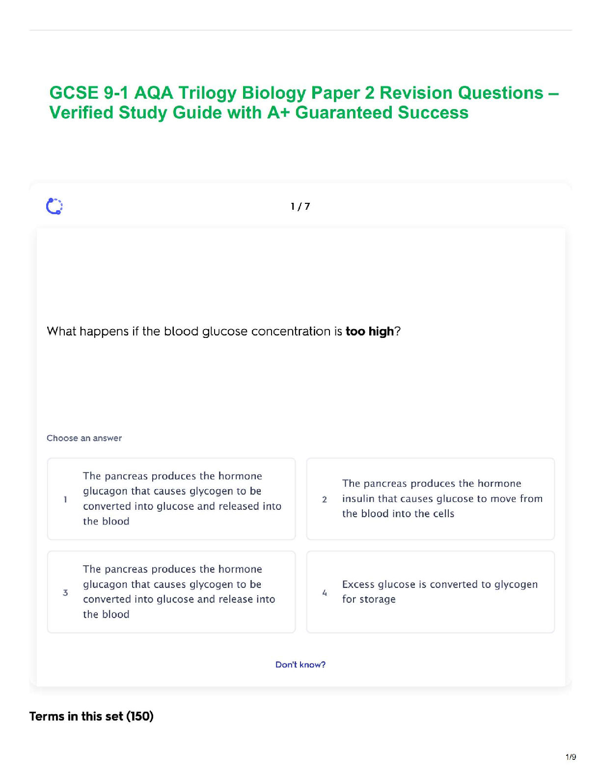 Biology > STUDY GUIDE > GCSE 9-1 AQA Trilogy Biology Paper 2 Revision Questions – Verified Study Guide with A+ Guaranteed Success