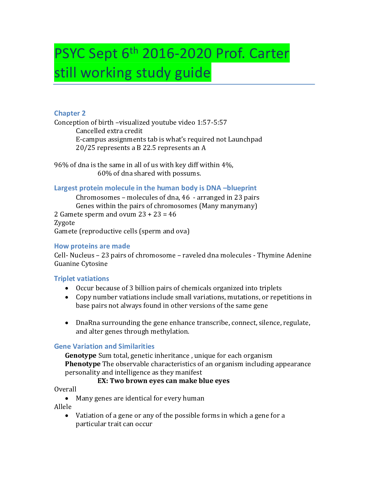 Psychology > STUDY GUIDE > PSYC Sept 6th 2016-2020 Prof. Carter still working study guide