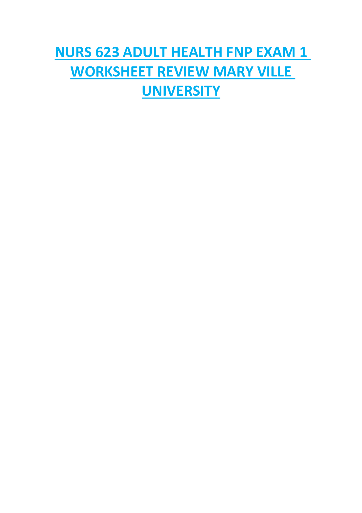 *NURSING > STUDY GUIDE > NURS 623 ADULT HEALTH FNP EXAM 1 WORKSHEET REVIEW MARY VILLE UNIVERSITY