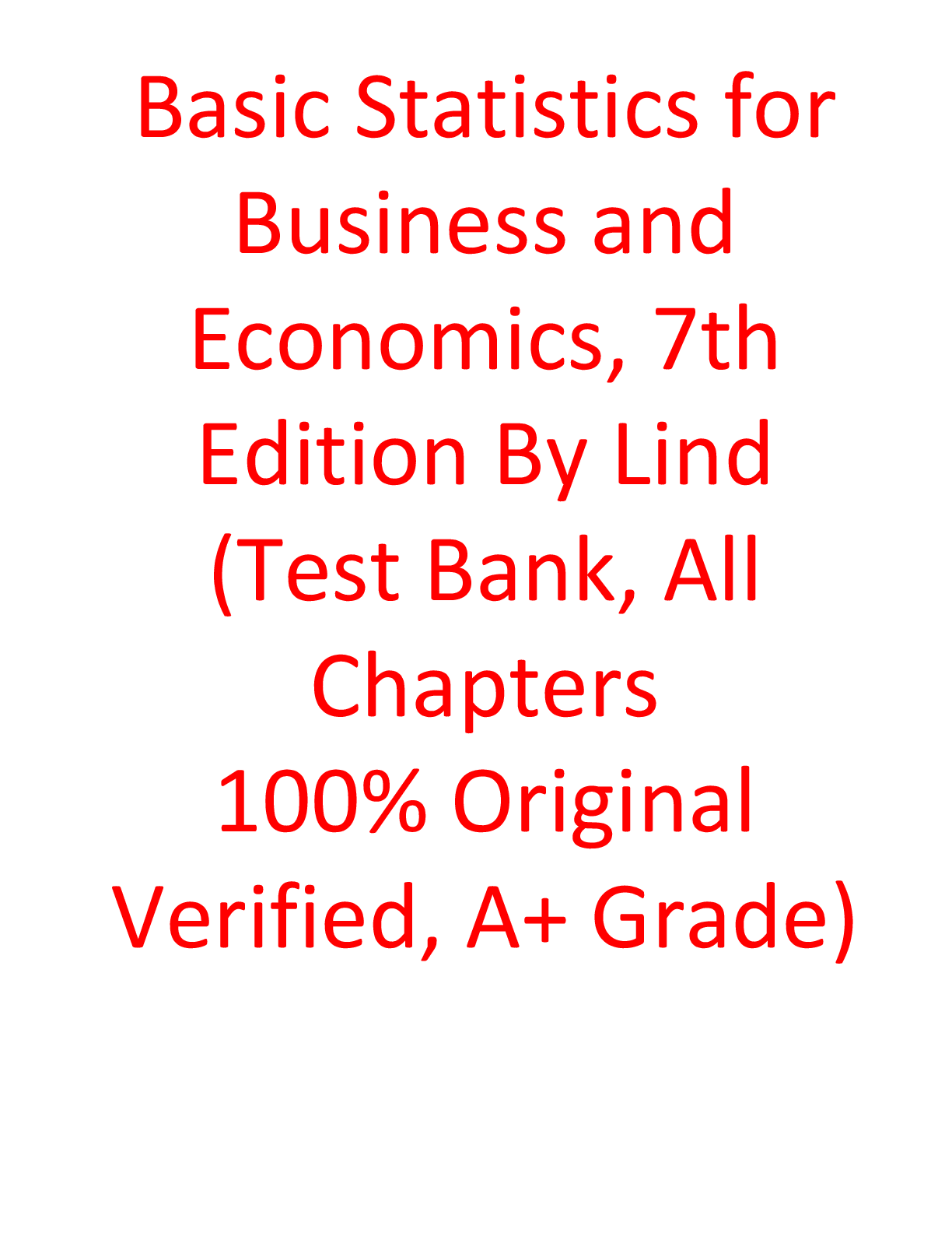 Business > Scholar Resources > Test Bank For Basic Statistics for Business and Economics 7th Edition By Lind