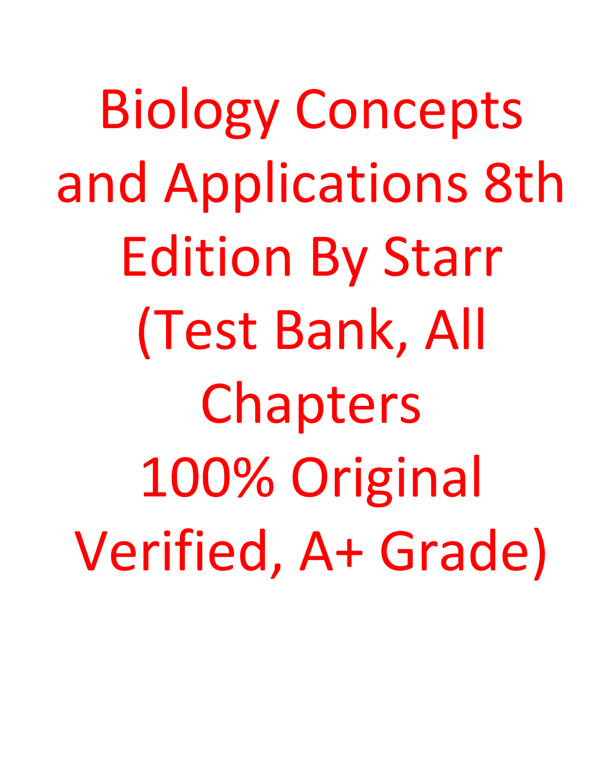 Biology > Scholar Resources > Test Bank For Biology Concepts and Applications 8th Edition By Starr