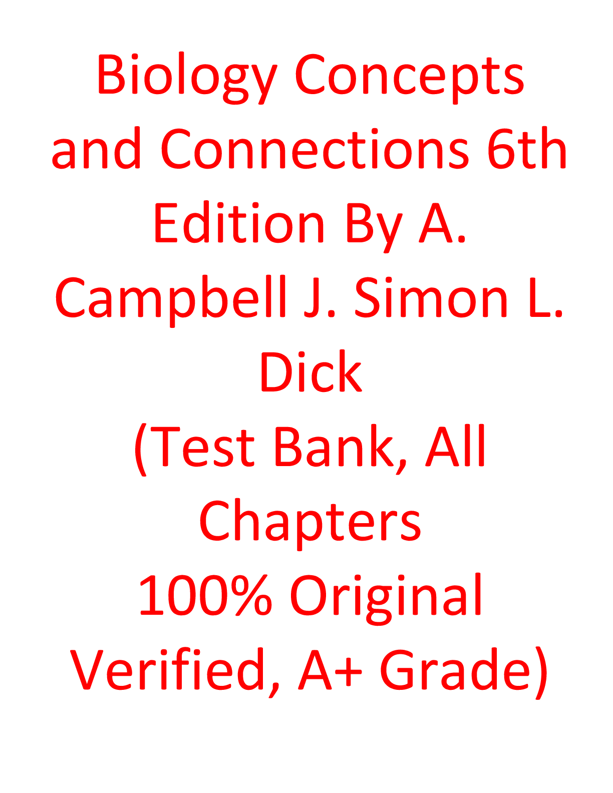 Biology > Scholar Resources > Test Bank For Biology Concepts and Connections 6th Edition By A. Campbell J. Simon L. Dick