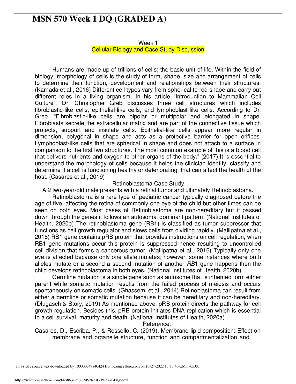 Health Care > DISCUSSION POST > MSN 570 Week 1 DQ (GRADED A) | Cellular Biology and Case Study Discussion